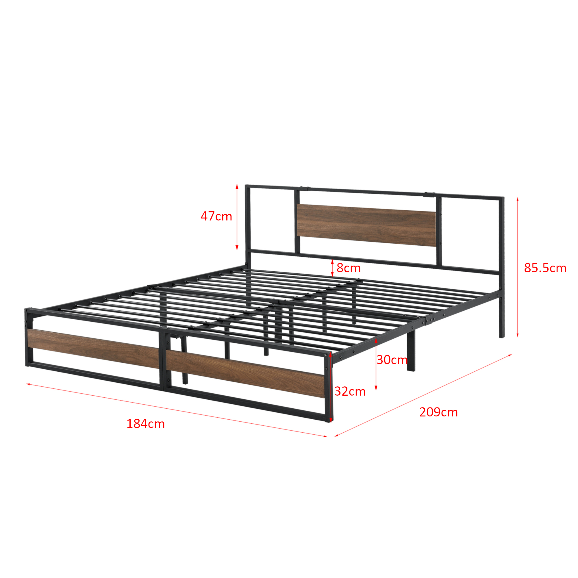 Pat cadru metalic Villach cu saltea 200 x 180 cm negru/efect lemn de nuc [en.casa] HausGarden Leisure