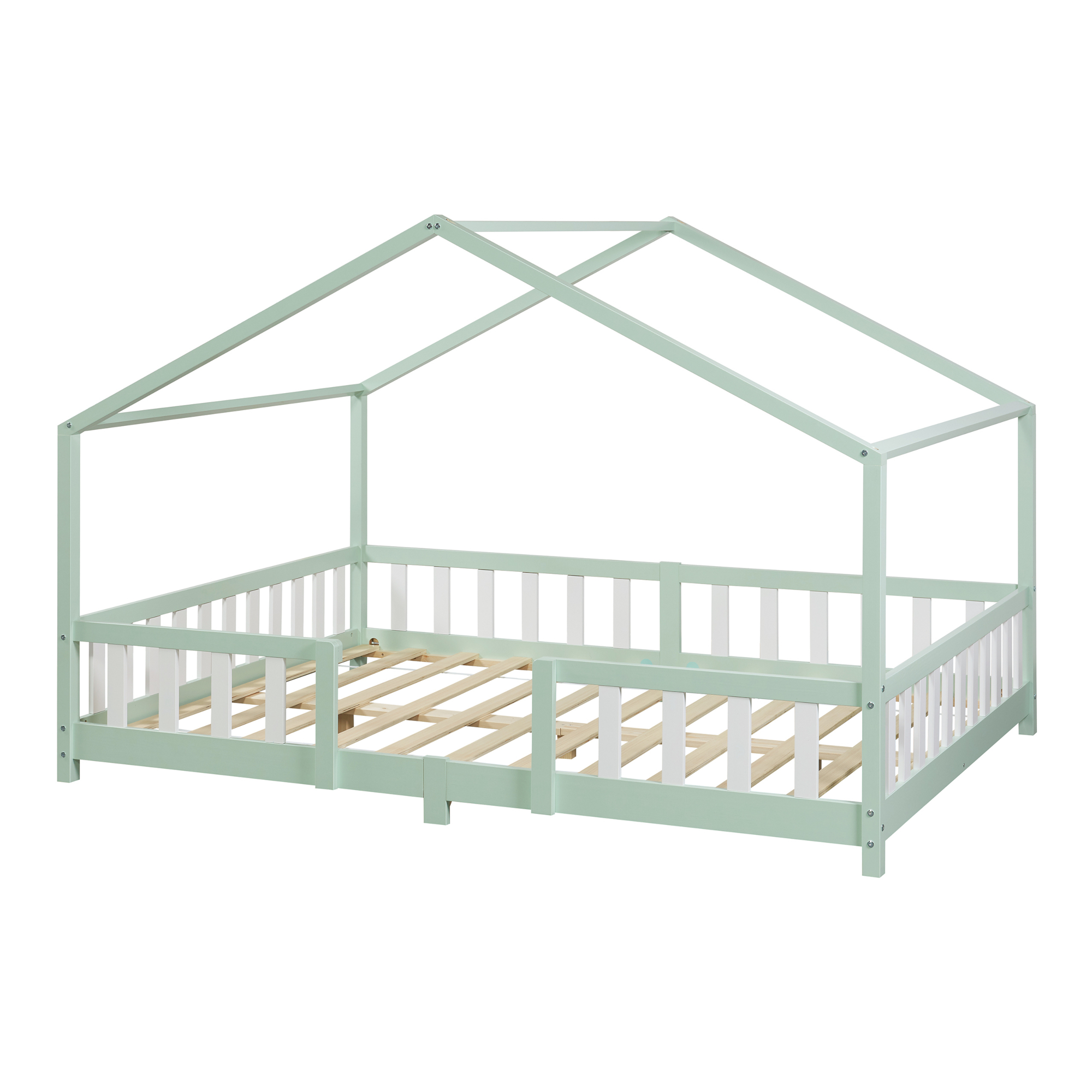 Pat casuta copii cu grilaj protectie Treviolo 200x120cm verde menta [en.casa] HausGarden Leisure