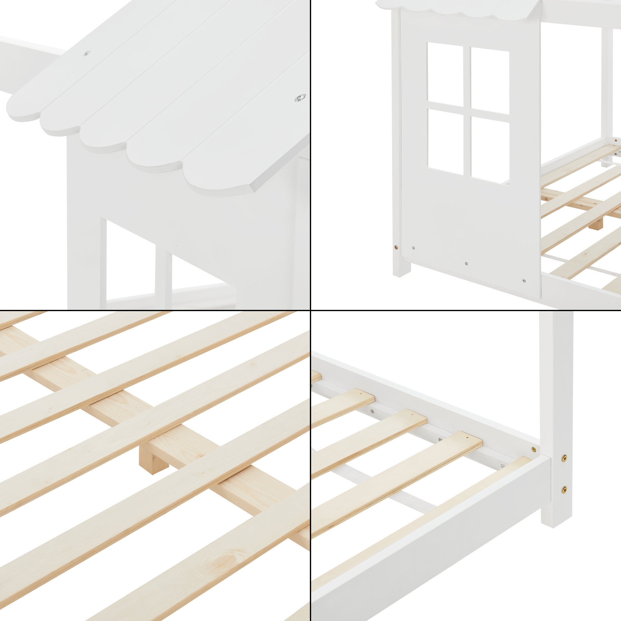 Pat casuta copii design semi deschis Tostedt 120x200 cm brad alb [en.casa] HausGarden Leisure