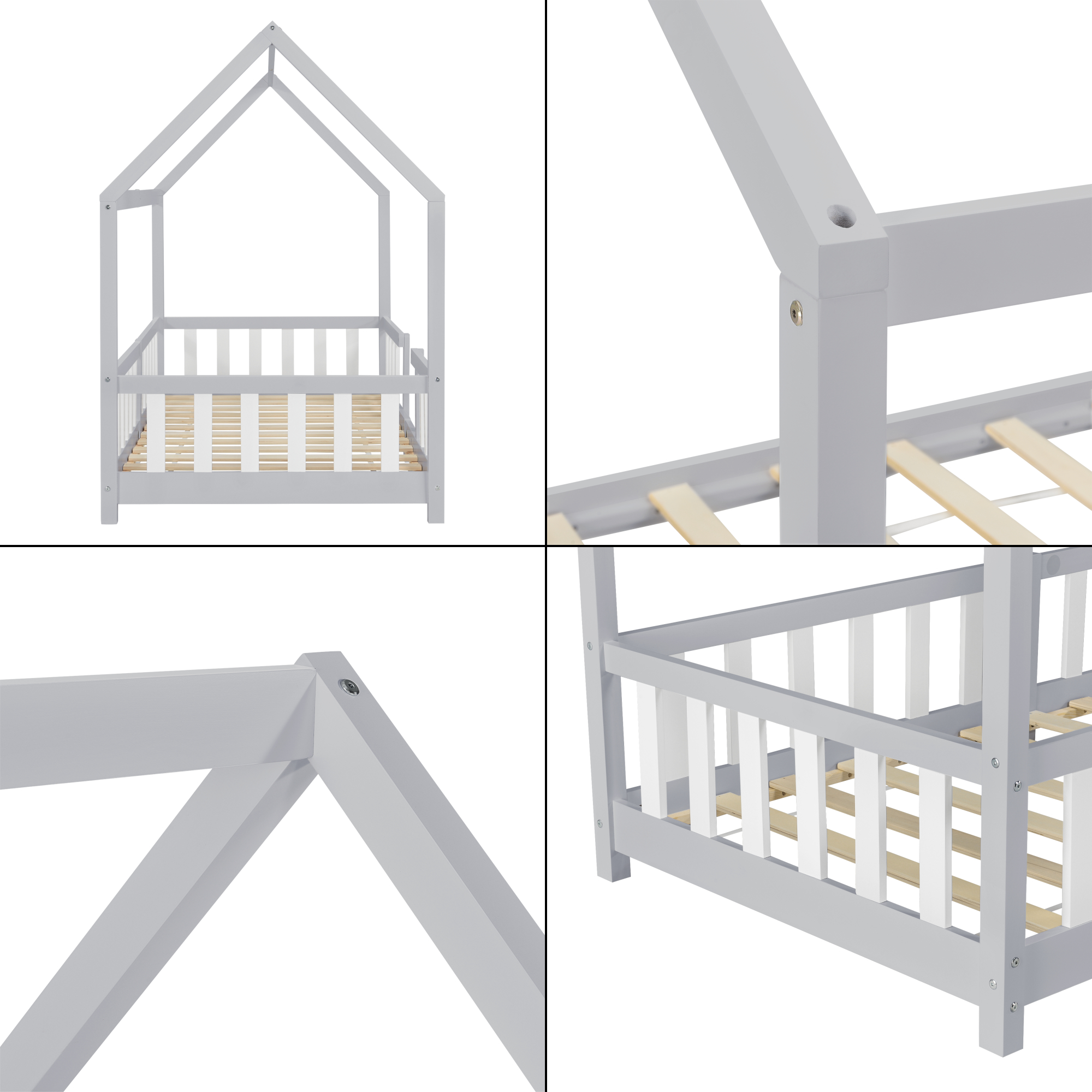Pat casuta copii Sisimiut 90 x 200 cm brad gri/alb [en.casa] HausGarden Leisure