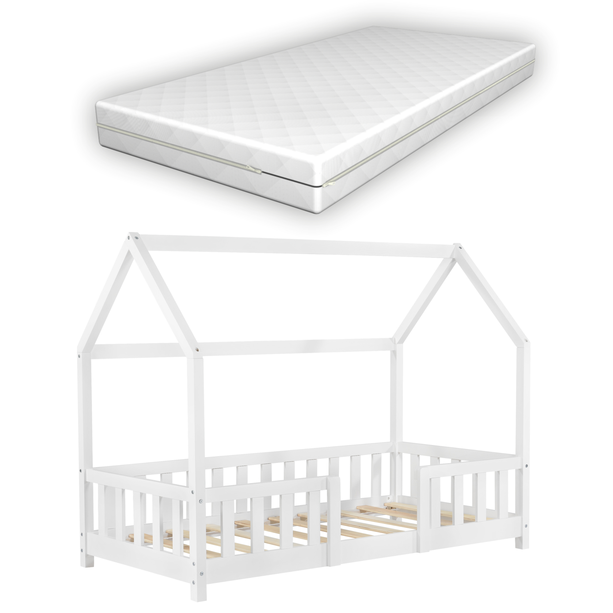 Pat copii cu saltea spuma rece Sisimiut 80 x 160 cm 70 Kg brad alb mat lacuit [en.casa] HausGarden Leisure