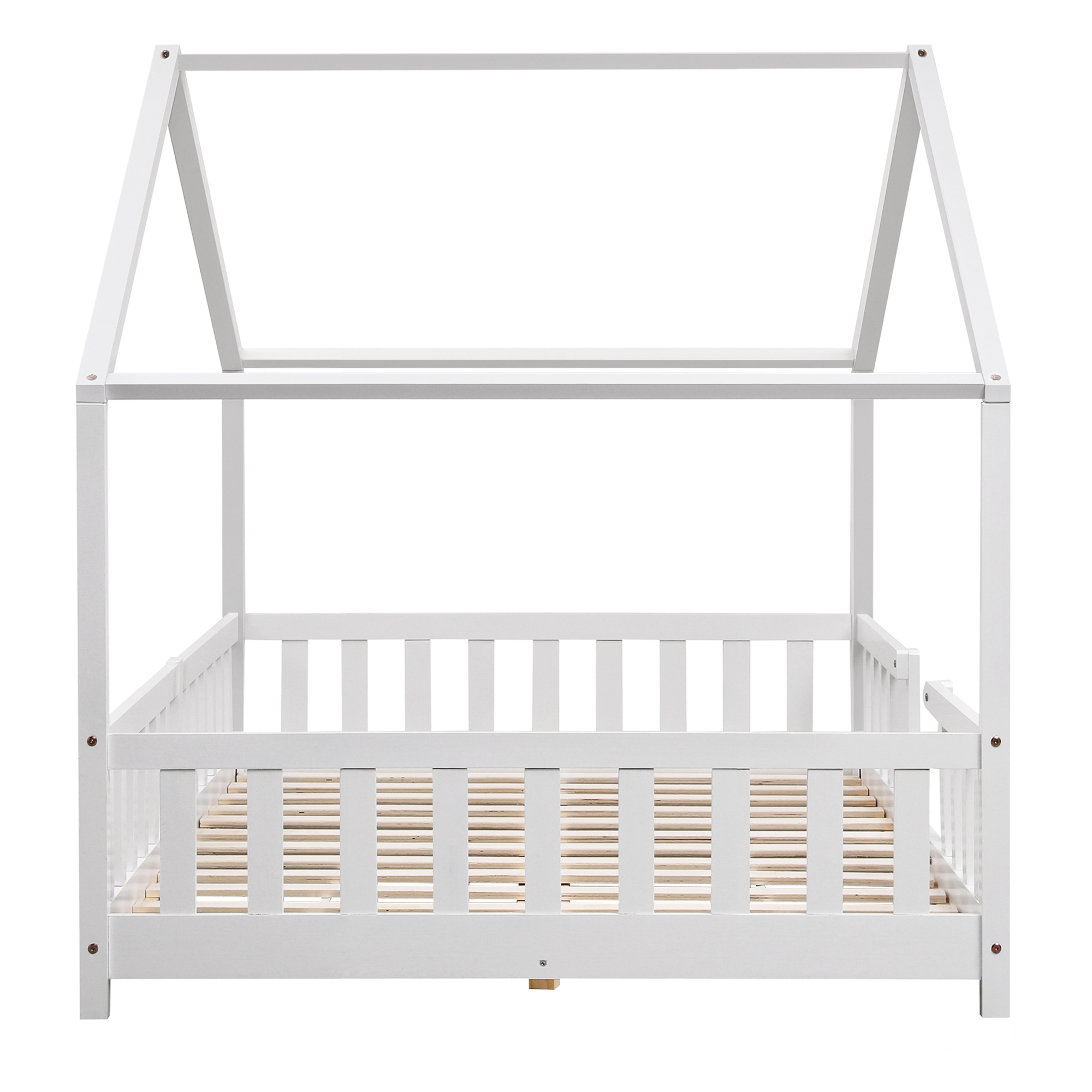 Pat copii design casuta Treviolo 120 x 200 cm lemn alb mat lacuit [en.casa] HausGarden Leisure