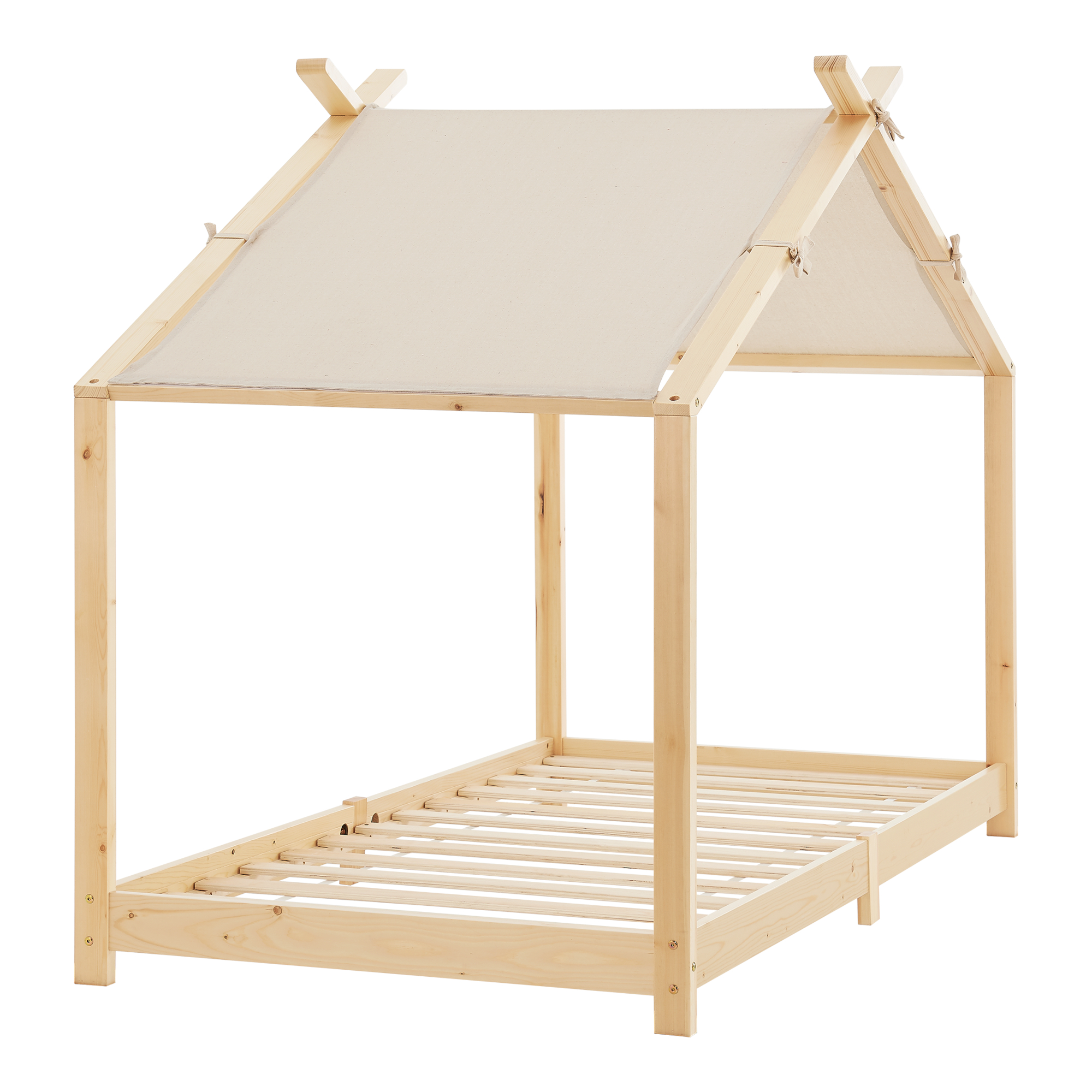 Pat copii, en.casa, PXSD-0002 Brome, 206 x 96 x 146 cm, brad, placaj, poliester, natur, design casuta HausGarden Leisure