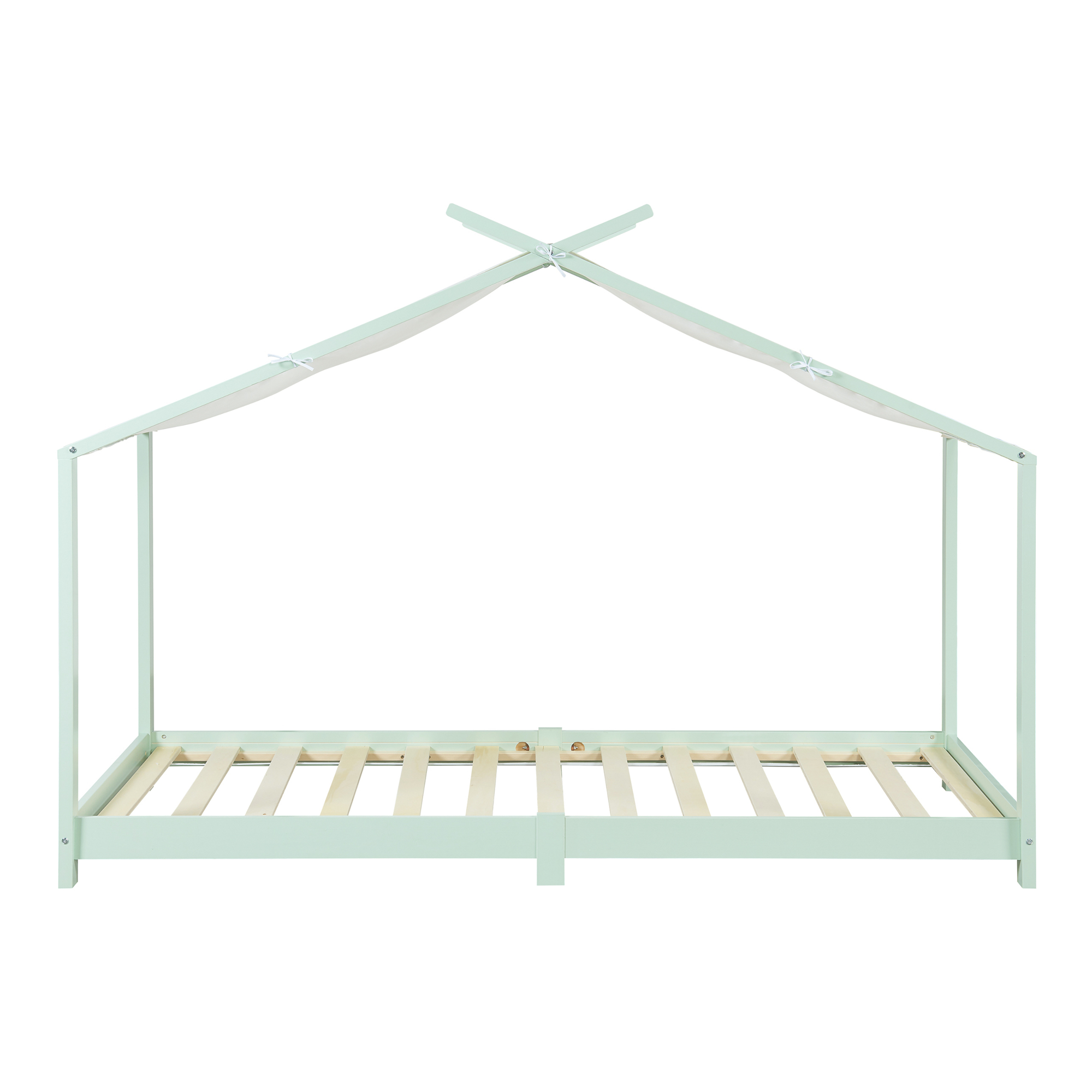 Pat copii tip căsuță Brome 90x200 cm cu saltea, verde mentă