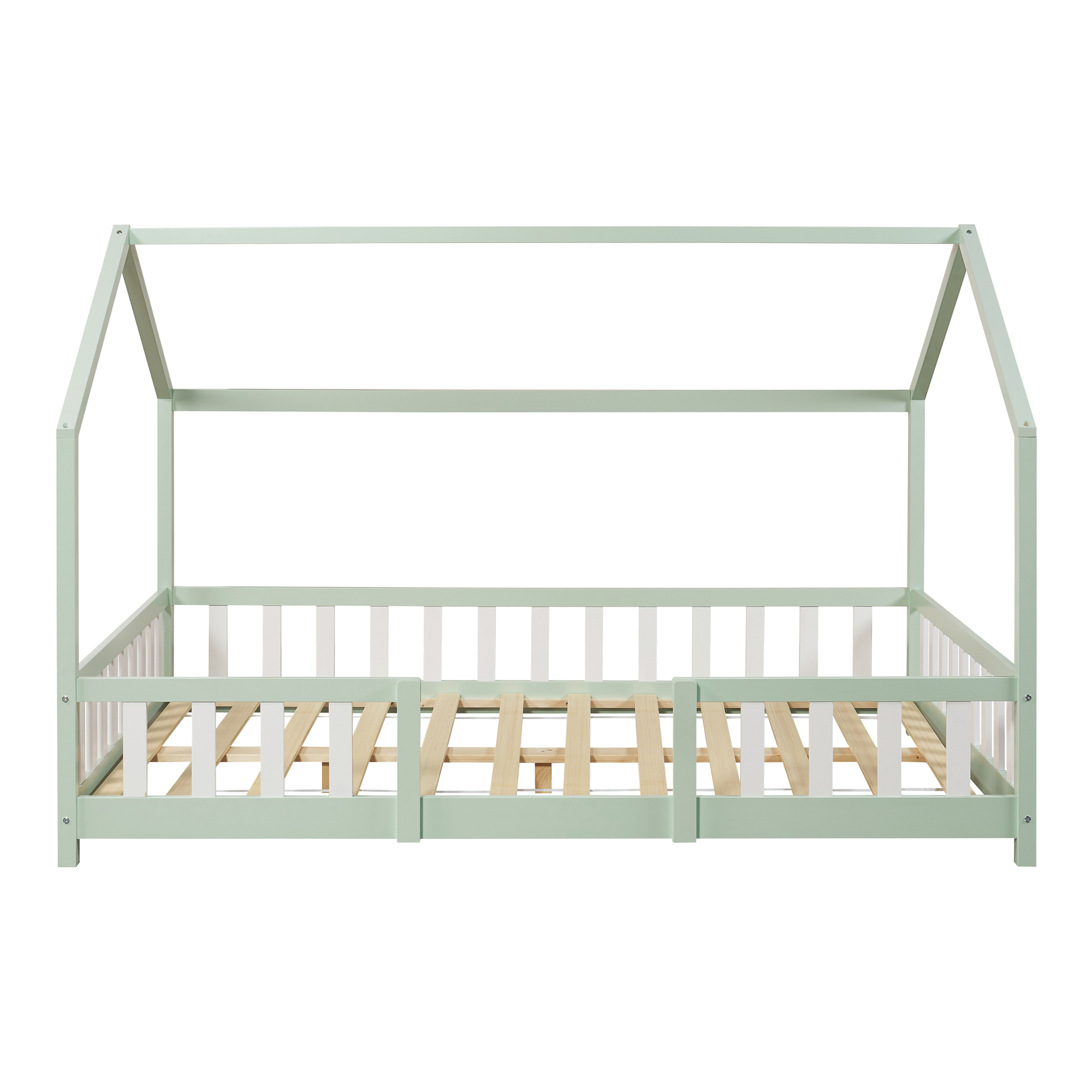 Pat copii tip căsuță Sisimiut 140x200 cm cu saltea, mint și alb