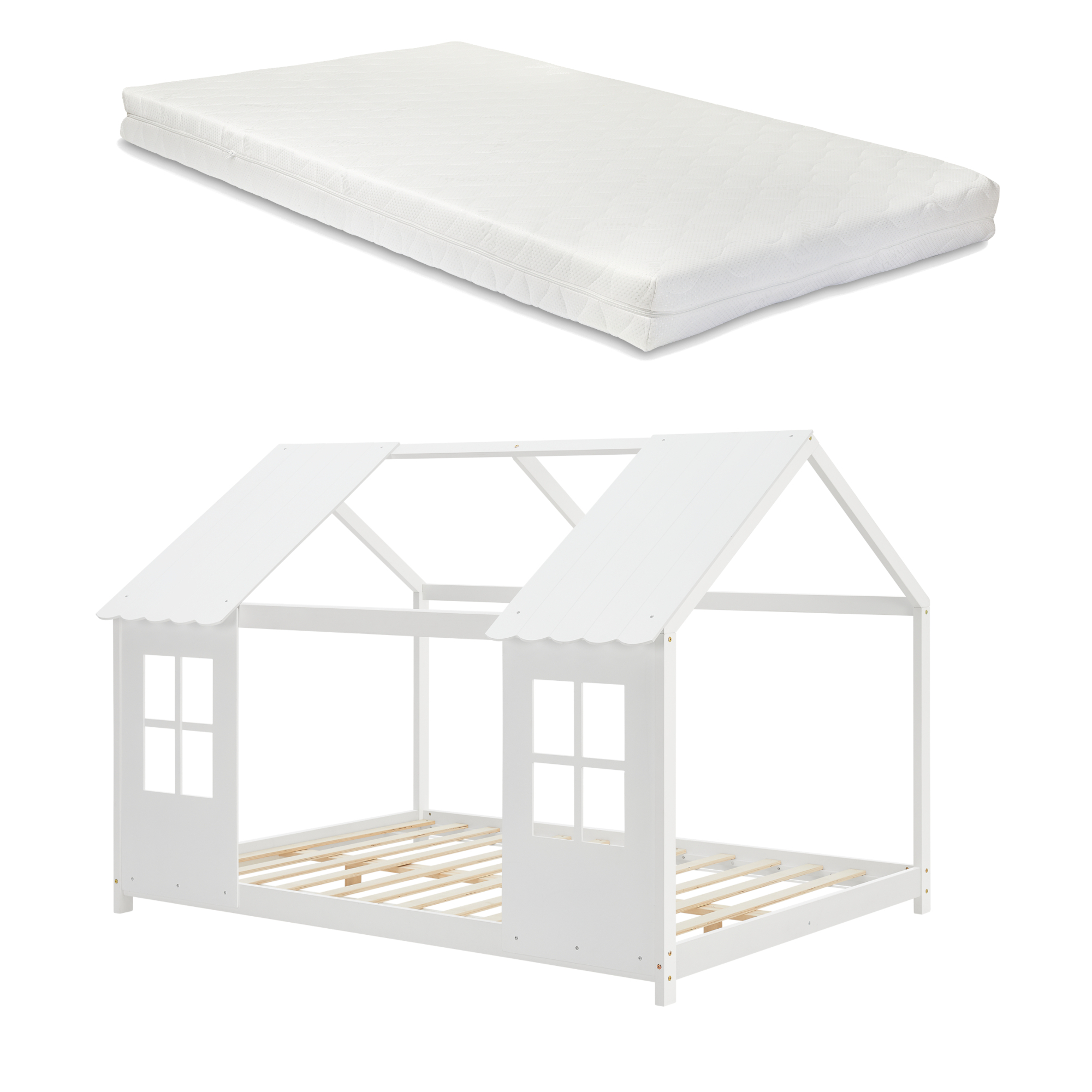 Datorită formei sale de căsuță și a celor două ferestre decorative, acest pat pentru copii din lemn aduce un plus de farmec în orice dormitor. Partea superioară deschisă permite decorarea cu ghirlande sau luminițe, pentru un colț de dormit cu adevărat special. În plus, construcția solidă susține până la 200 kg și se montează rapid și ușor.