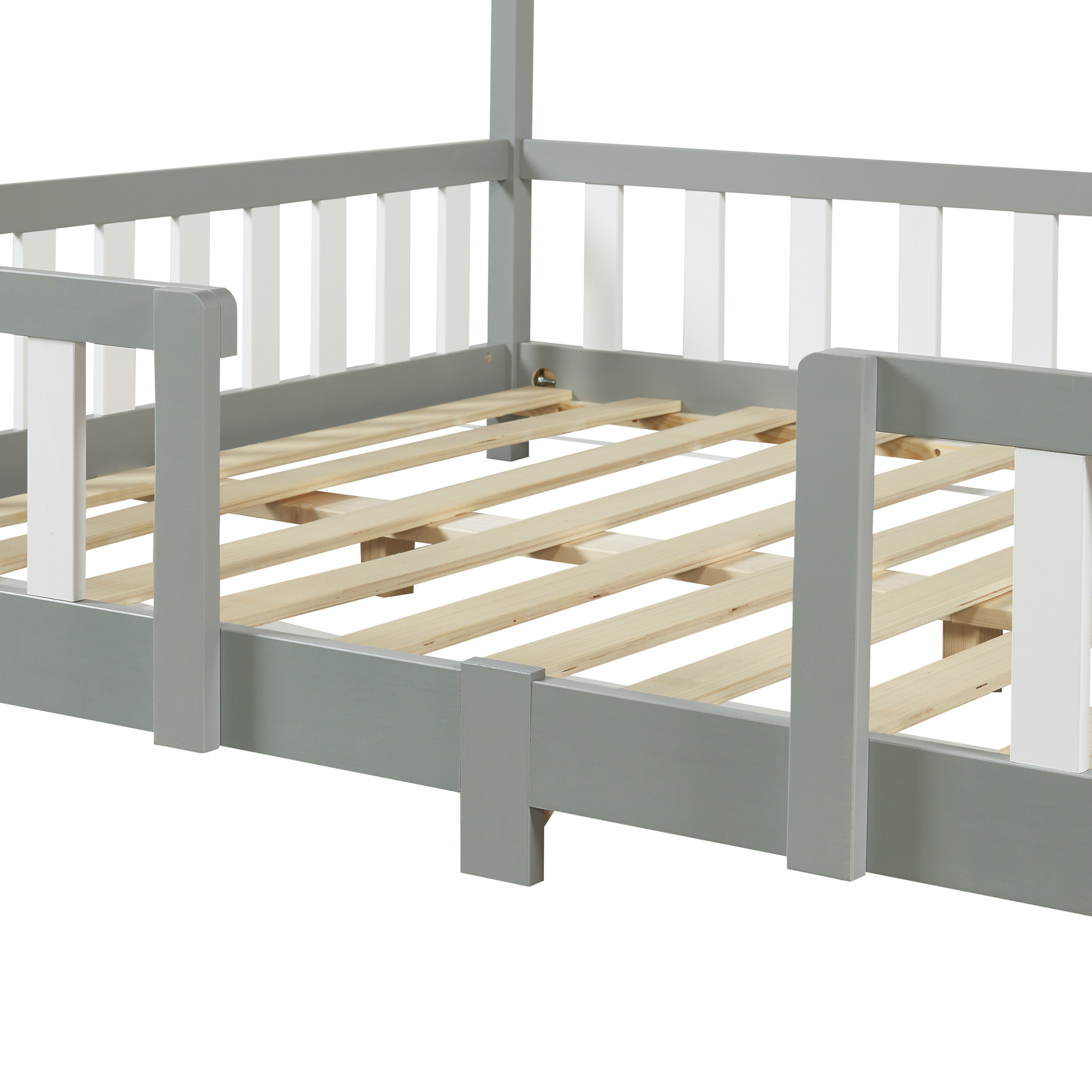 Pat copii tip căsuță Treviolo 120x200 cm, gri/alb, din lemn