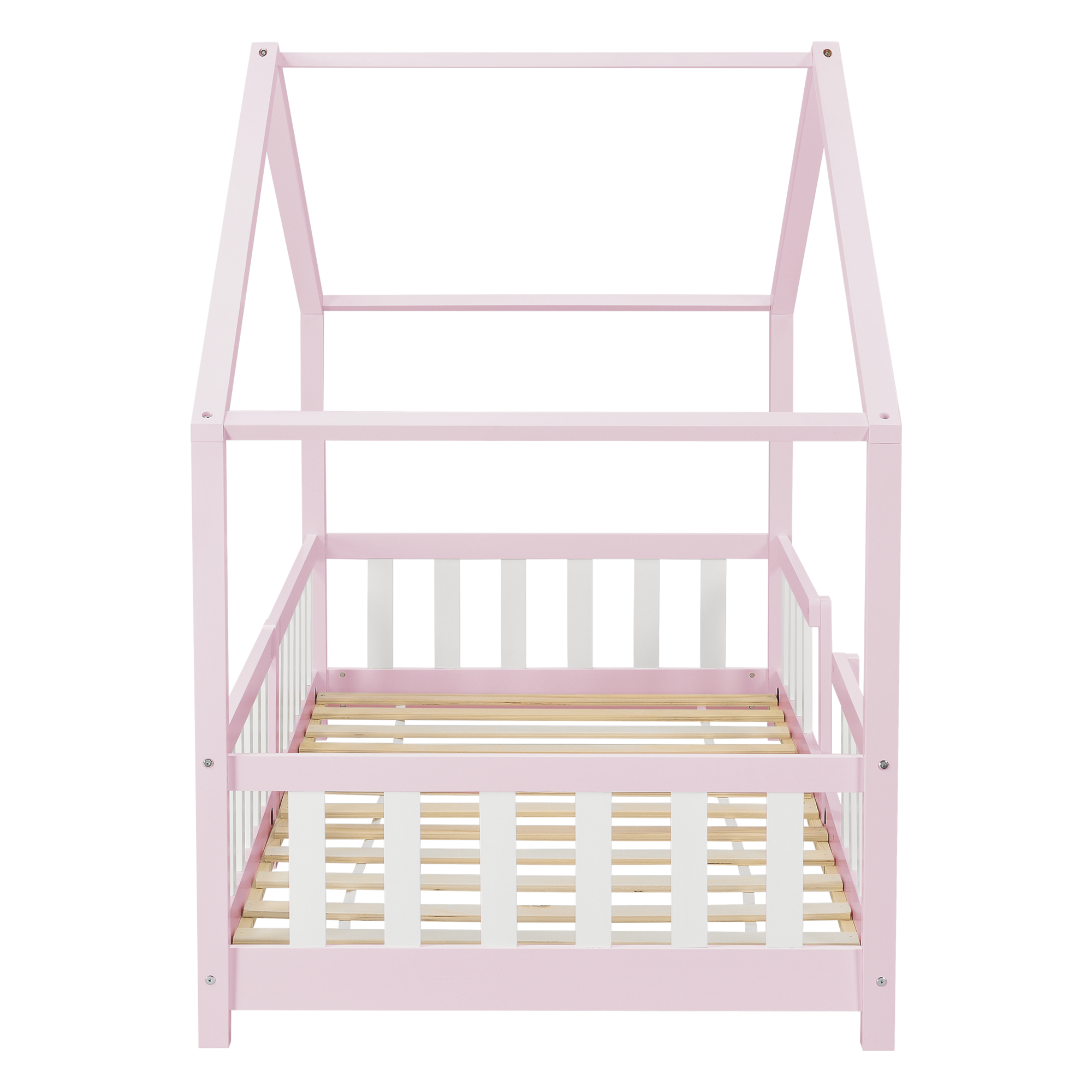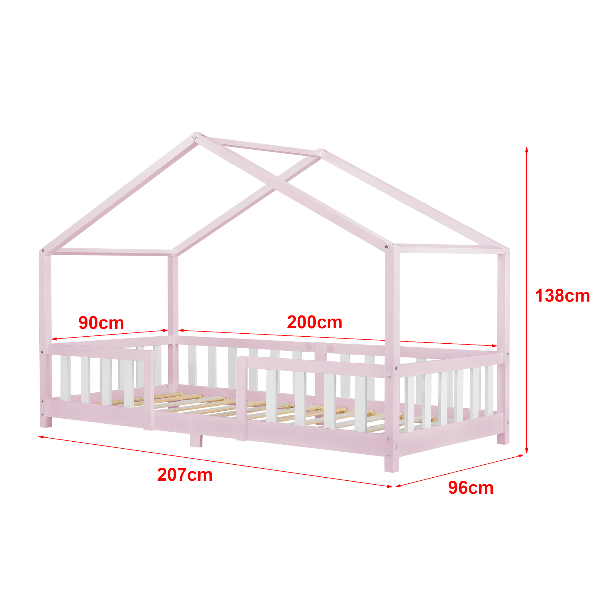 Pat copii tip căsuță Treviolo 90x200 cm, roz/alb, din lemn