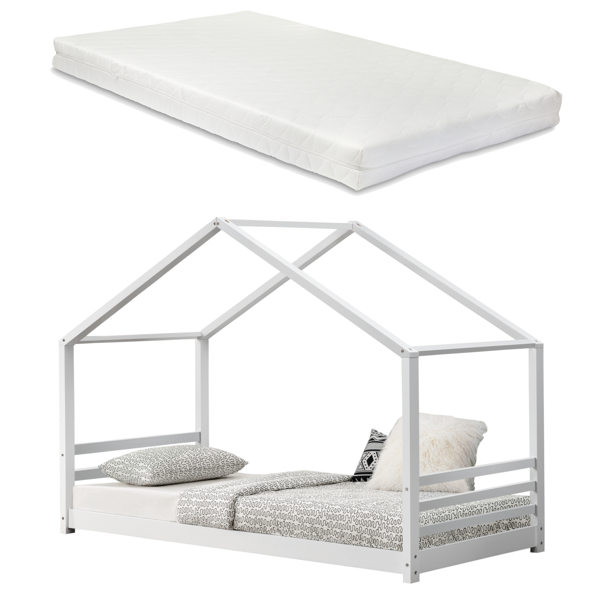 Pat copii tip căsuță Vardø 90x200 cm alb cu saltea inclusă