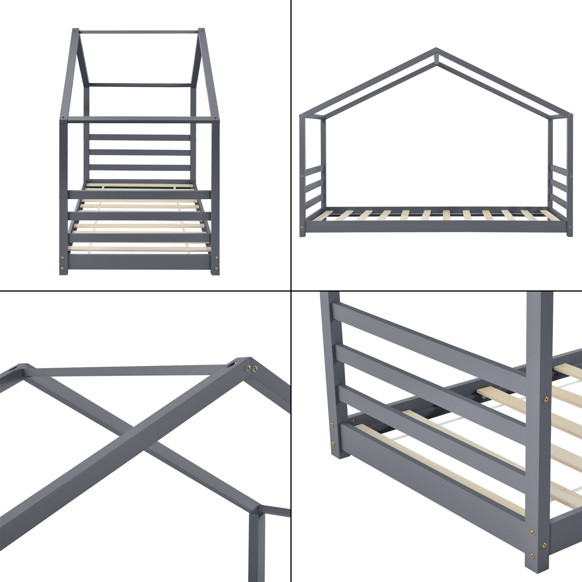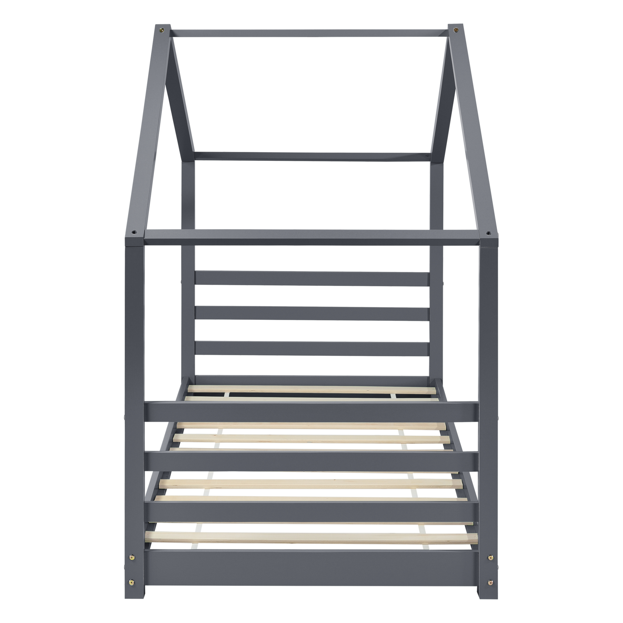 Pat copii tip căsuță Vardø 90x200 cm cu somieră și protecție, gri închis