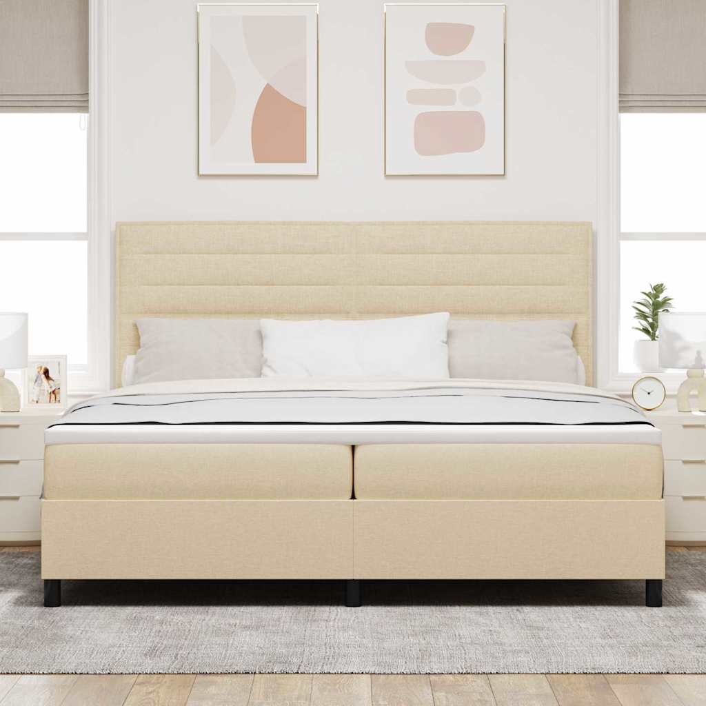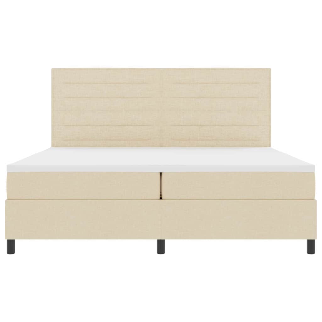 Pat cu arcuri cu saltea cu headboard Crem 200 x 200 cm țesătură GartenMobel Dekor