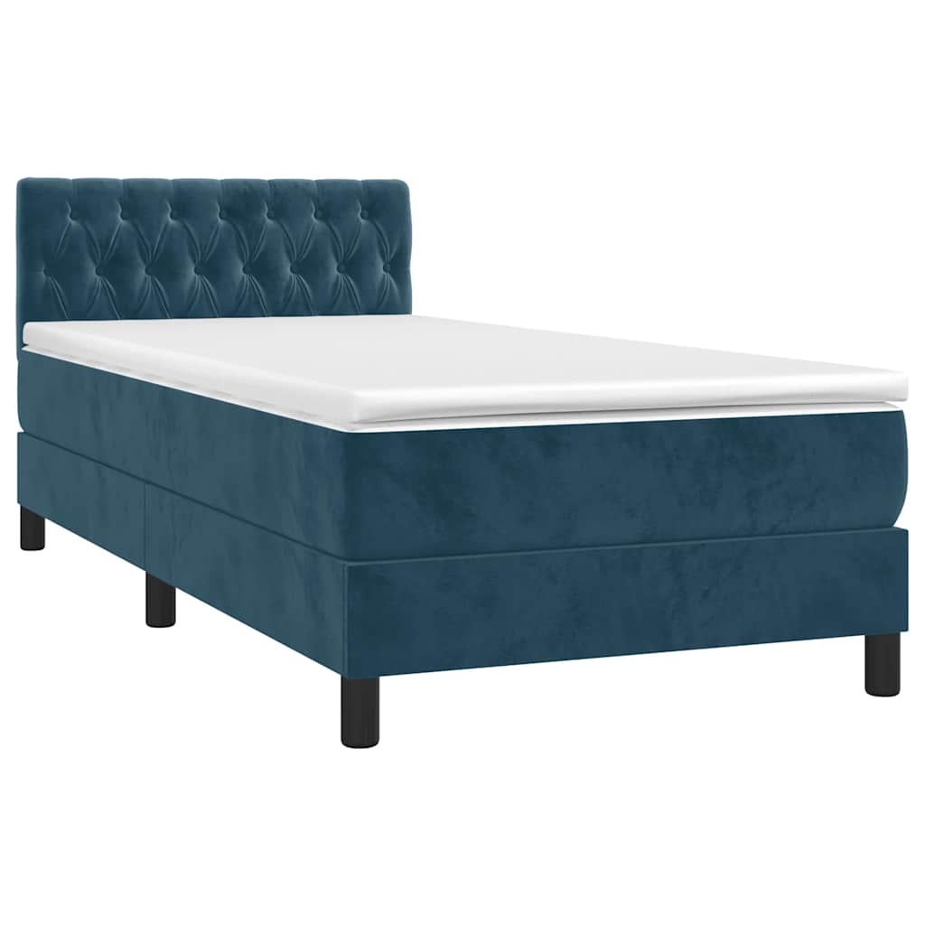 Pat cu arcuri, saltea și LED, bleumarin, 90x190 cm, catifea GartenMobel Dekor