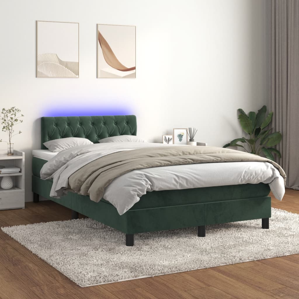 Pat cu arcuri, saltea și LED, verde închis, 120x190 cm, catifea GartenMobel Dekor