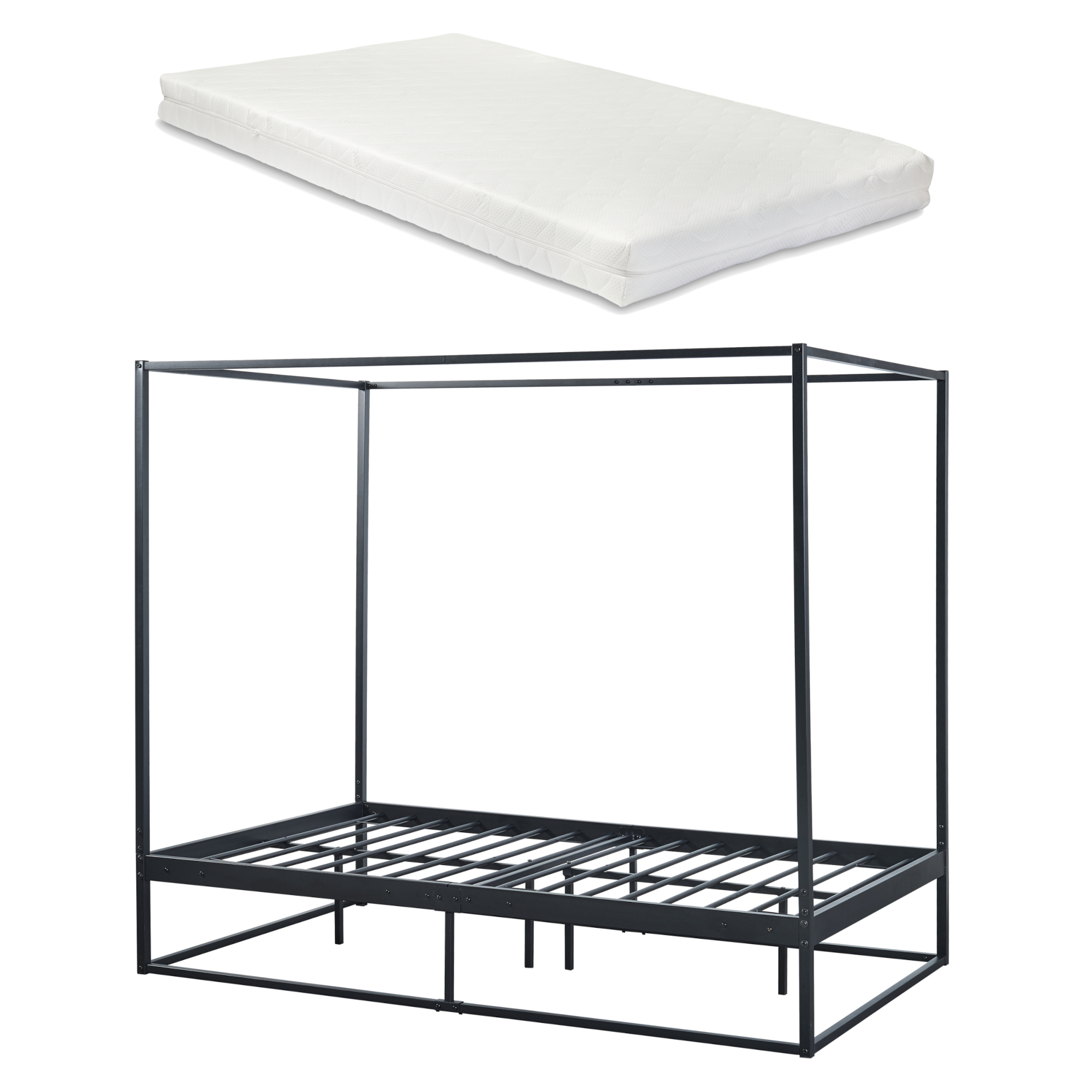 Pat cu baldachin Kristianstad 120x200 cm negru, cu saltea inclusă