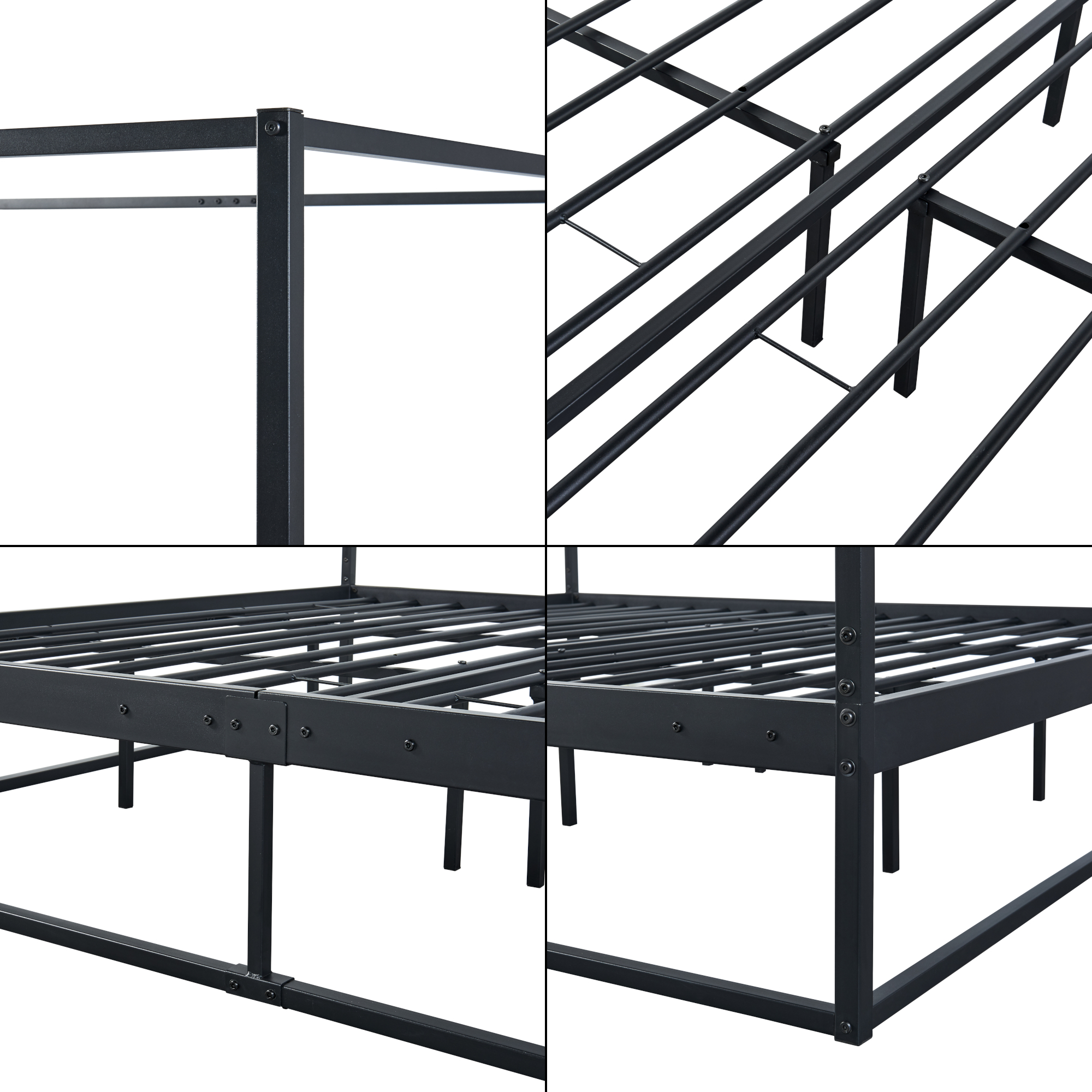Pat cu baldachin Kristianstad 180x200 cm negru, cu saltea inclusa