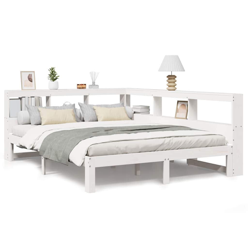 Pat cu bibliotecă fără saltea, alb, 140x190 cm, lemn masiv pin GartenMobel Dekor