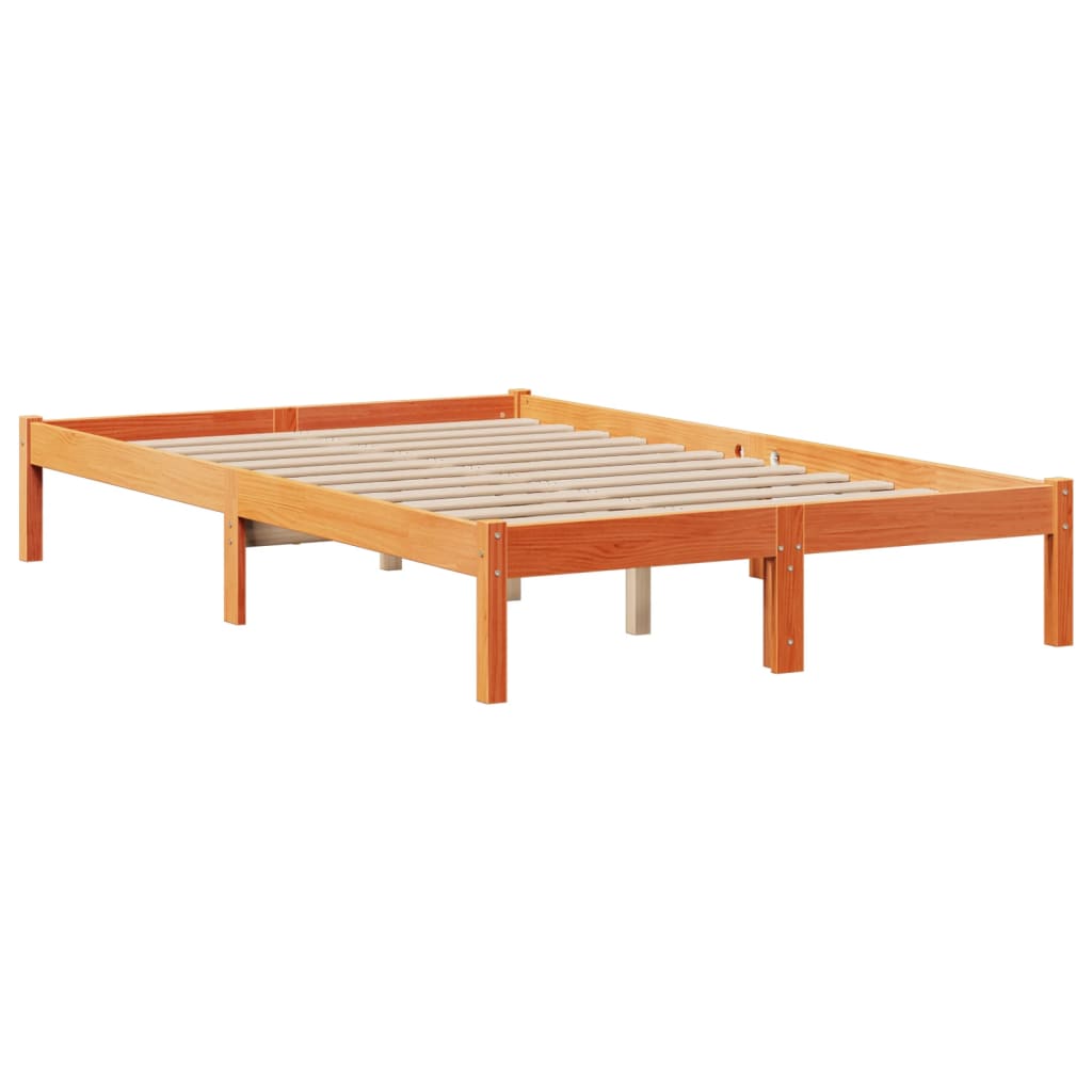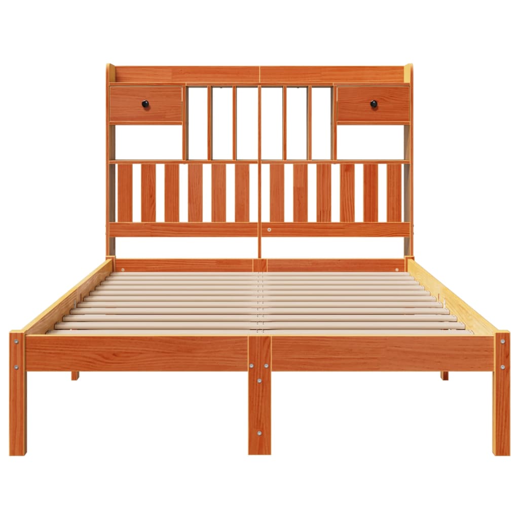 Pat cu bibliotecă fără saltea maro 135x190 cm lemn masiv de pin GartenMobel Dekor