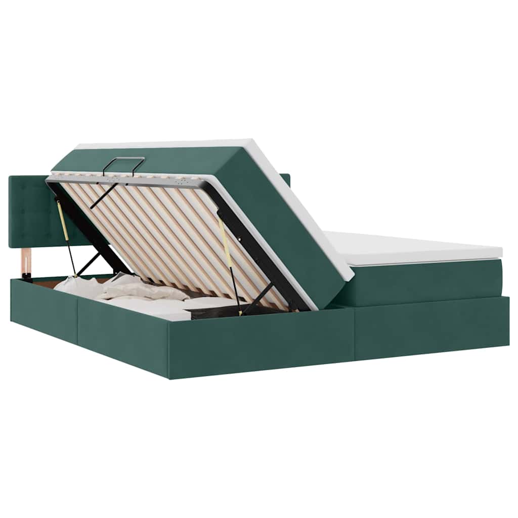 Pat cu lumini cu bandă LED Verde închis 200 x 200 cm Catifea GartenMobel Dekor