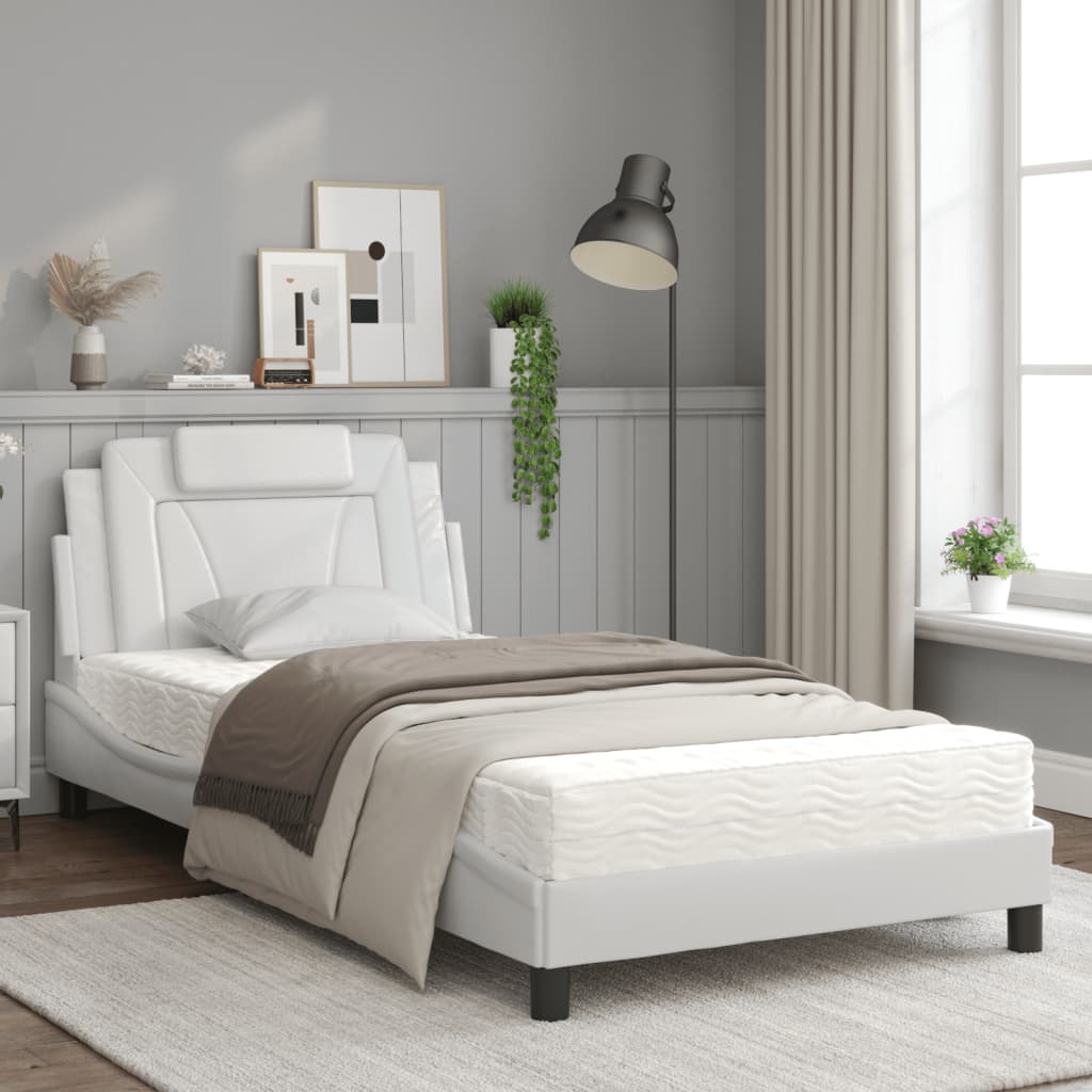 Pat cu saltea, alb, 100x200 cm, piele ecologică GartenMobel Dekor
