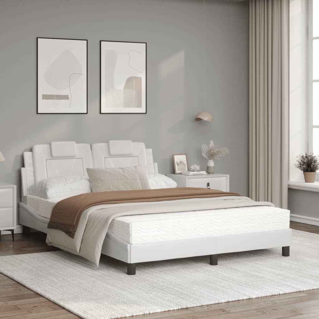 Pat cu saltea, alb, 120x200 cm, piele ecologică GartenMobel Dekor