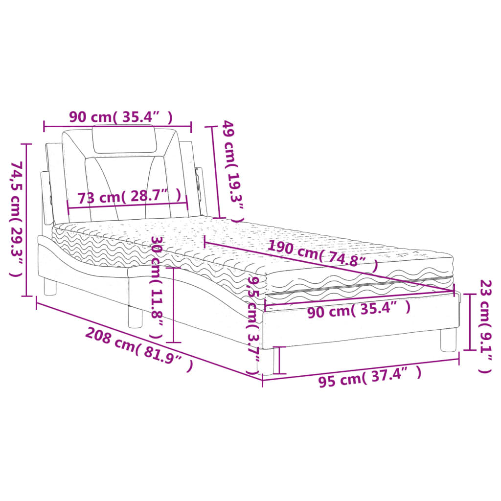 Pat cu saltea, alb, 90x190 cm, piele ecologică GartenMobel Dekor