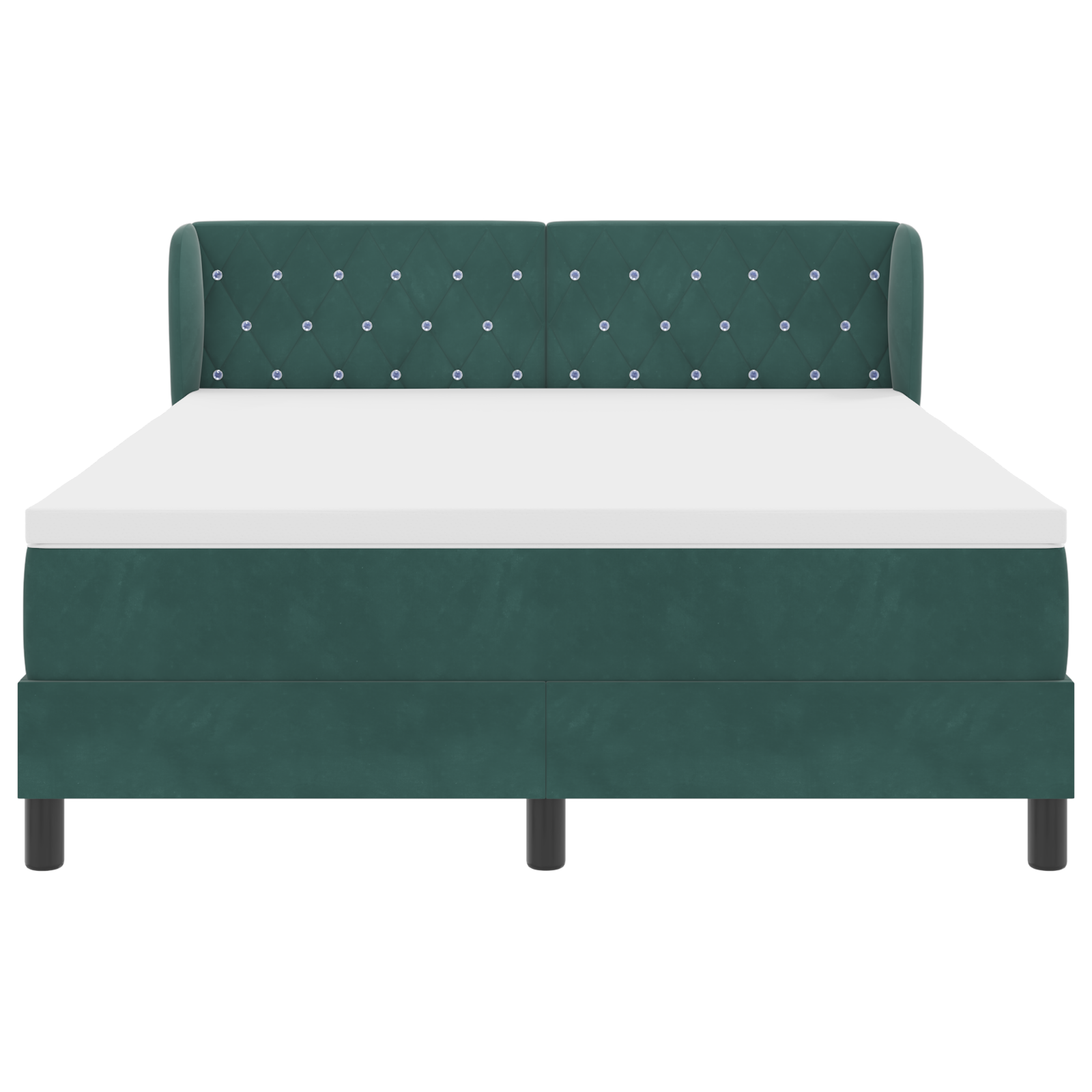 Pat cu saltea cu arcuri de boxe Verde închis 140x190 cm Catifea GartenMobel Dekor