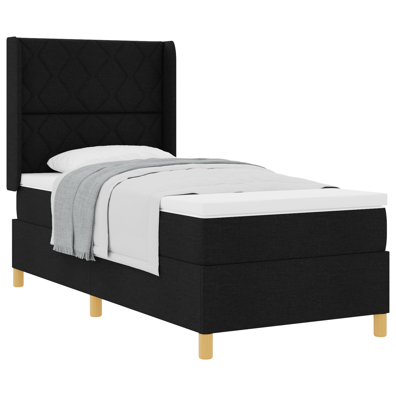 Salteaua asta cu springs în compartimente e aici să-ți îmbunătățească somnul, oferind suport confortabil pentru o noapte liniștită. Cu un finisaj elegant din material textil negru, se potrivește perfect cu orice decor de dormitor, ajutându-te să te simți relaxat și revigorat.