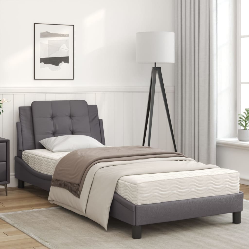 Pat cu saltea, gri, 100x200 cm, piele ecologică GartenMobel Dekor