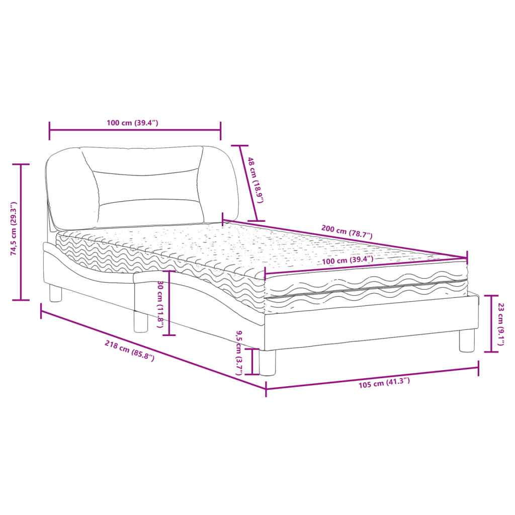 Pat cu saltea, gri deschis, 100x200 cm, textil GartenMobel Dekor