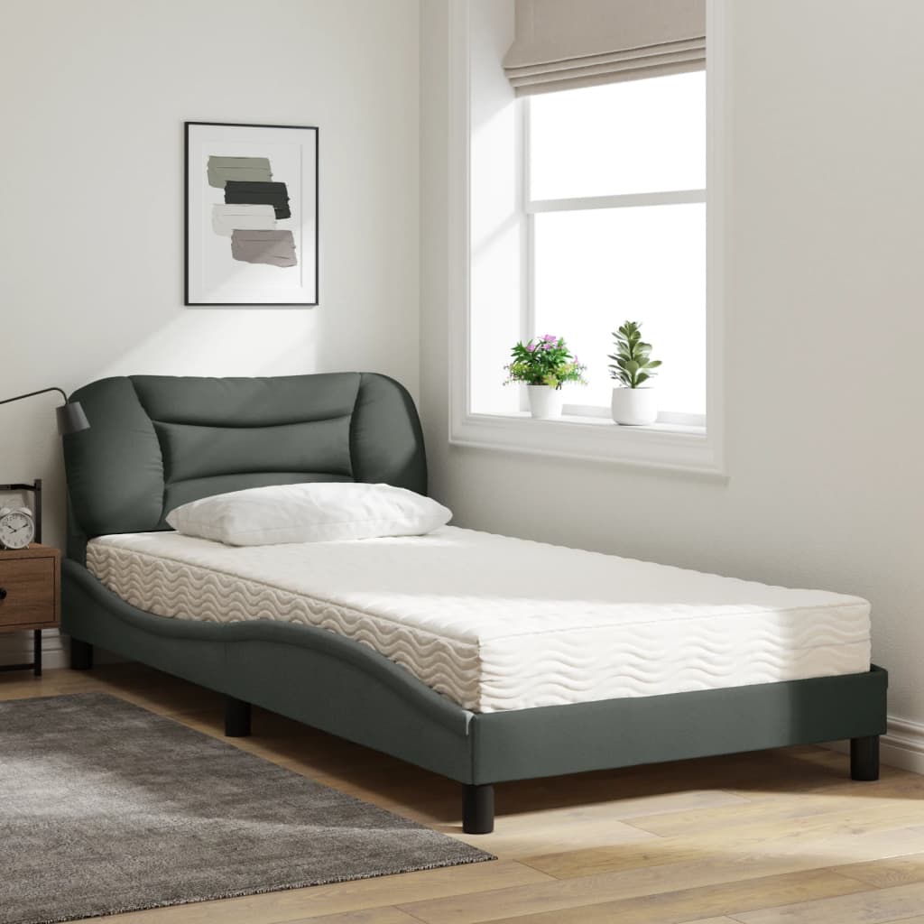 Pat cu saltea, gri închis, 100x200 cm, textil GartenMobel Dekor