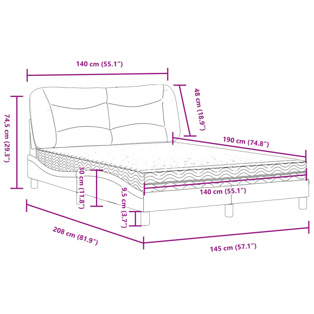 Pat cu saltea, gri închis, 140x190 cm, textil GartenMobel Dekor