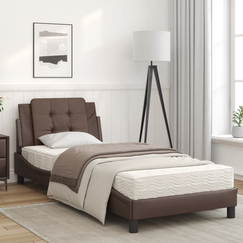 Pat cu saltea, maro, 100x200 cm, piele ecologică GartenMobel Dekor