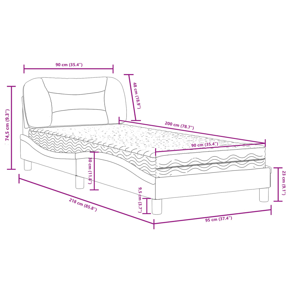 Pat cu saltea, maro, 90x200 cm, piele ecologică GartenMobel Dekor