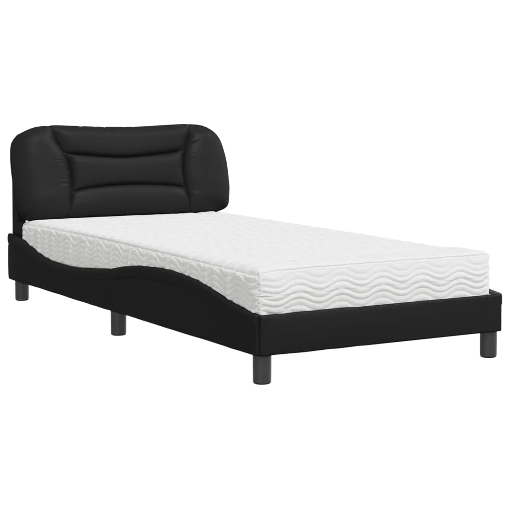 Pat cu saltea, negru, 100x200 cm, piele ecologică GartenMobel Dekor