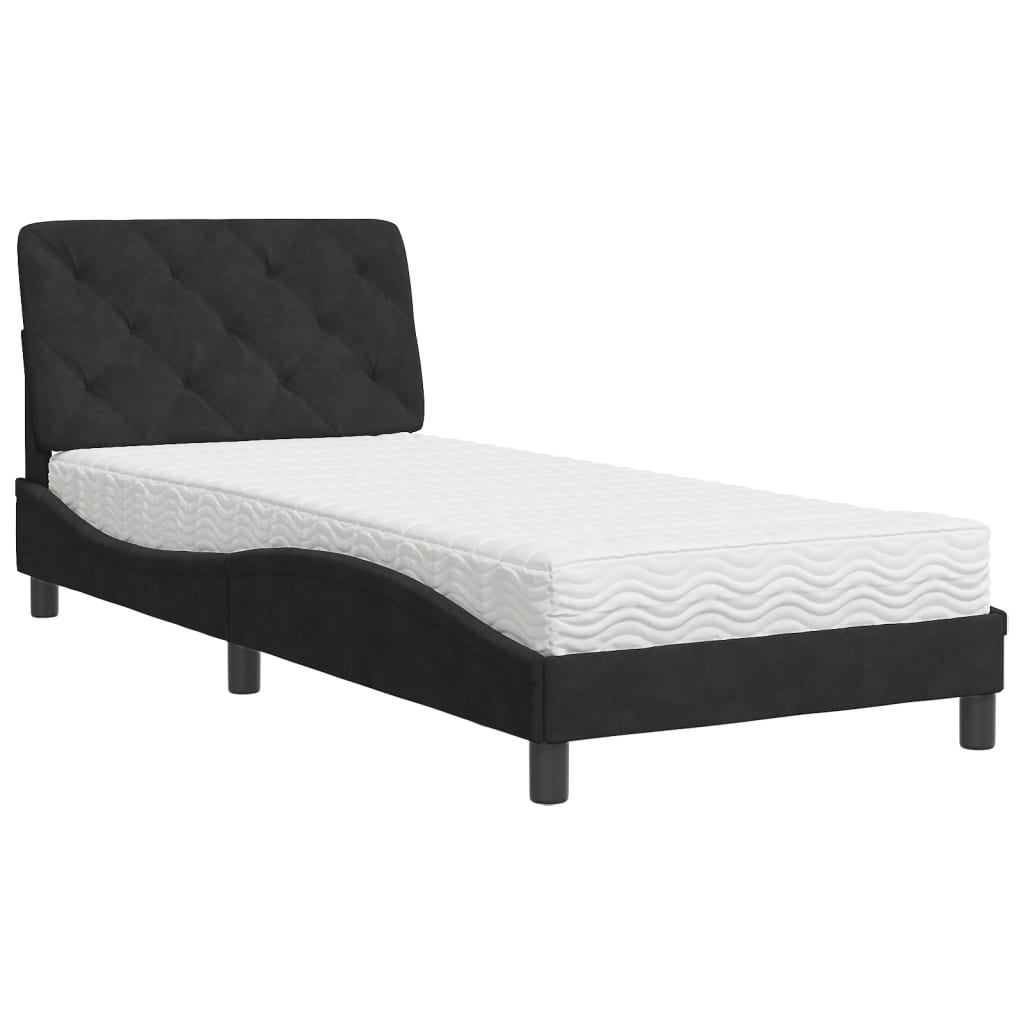 Pat cu saltea, negru, 90x190 cm, catifea GartenMobel Dekor