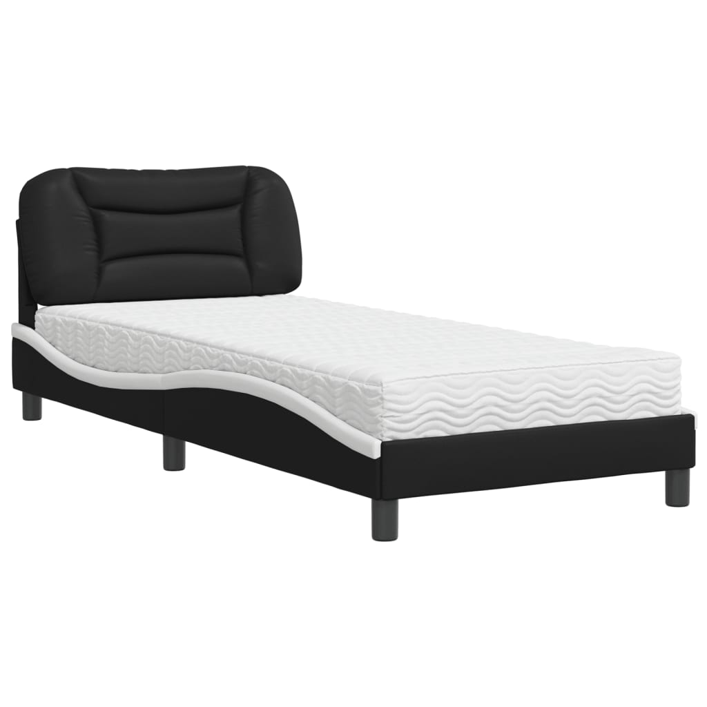 Pat cu saltea, negru și alb, 80x200 cm, piele ecologică GartenMobel Dekor