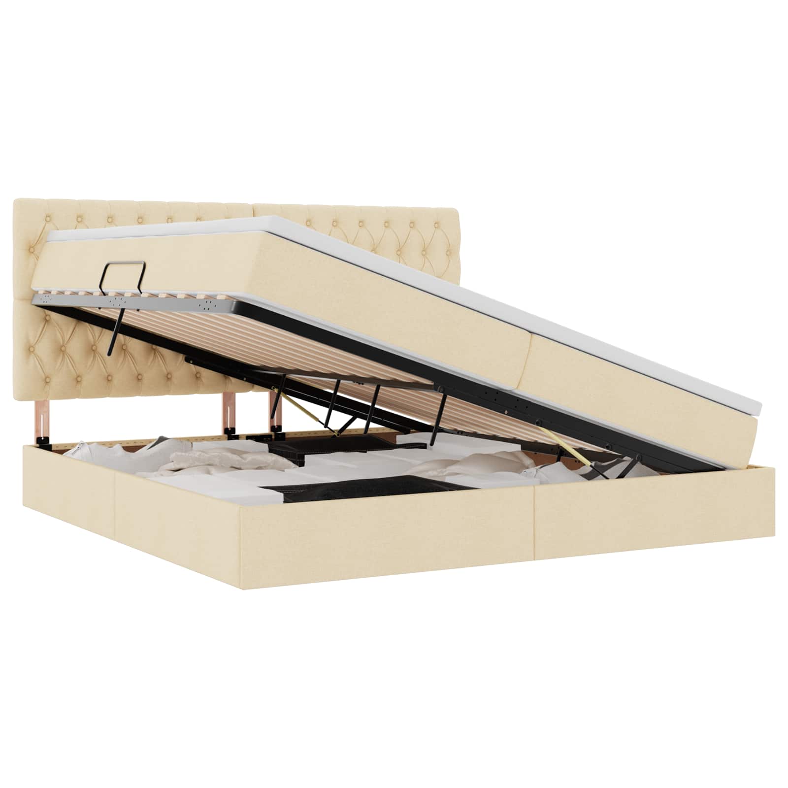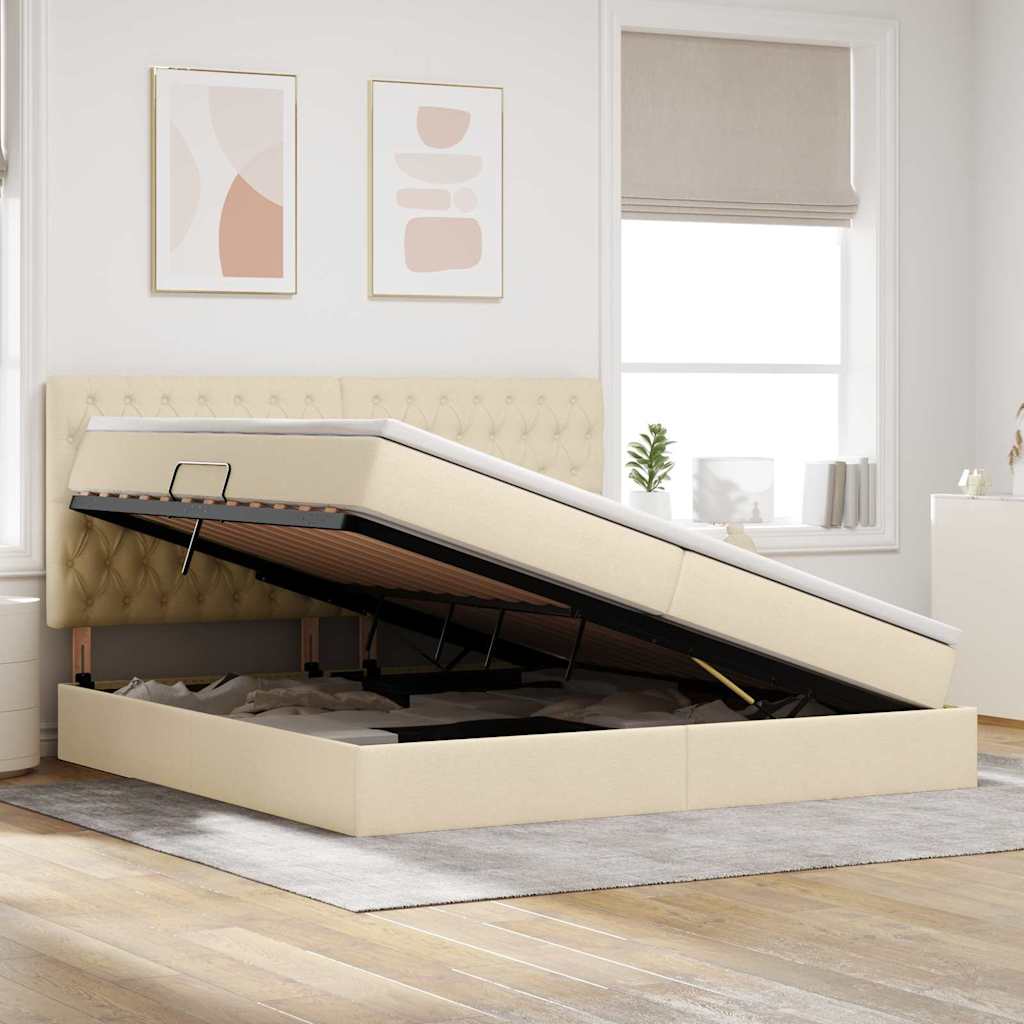 Pat cu saltea și spațiu de depozitare Creme 200 x 200 cm GartenMobel Dekor