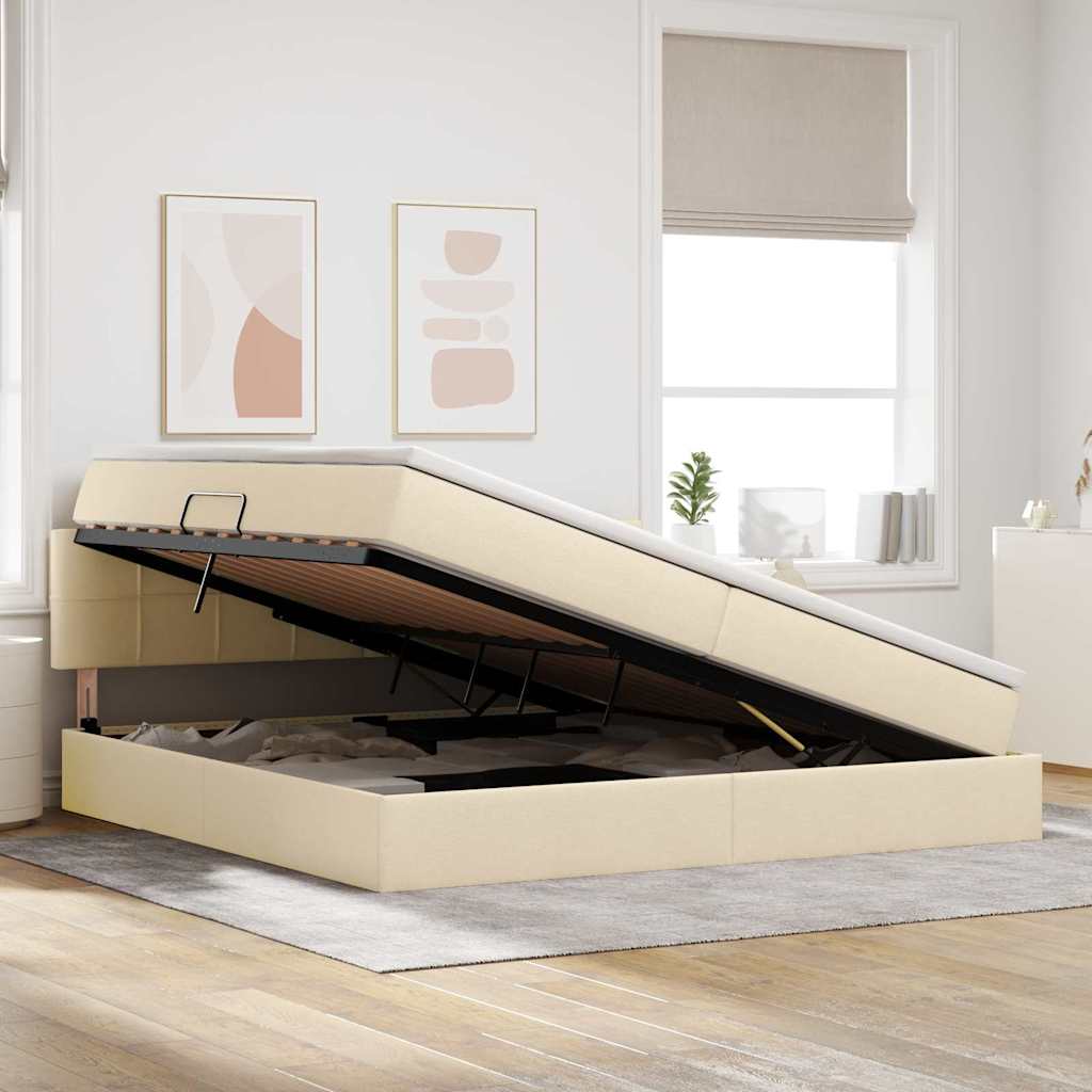 Pat cu saltea și spațiu de depozitare Creme 200 x 200 cm GartenMobel Dekor