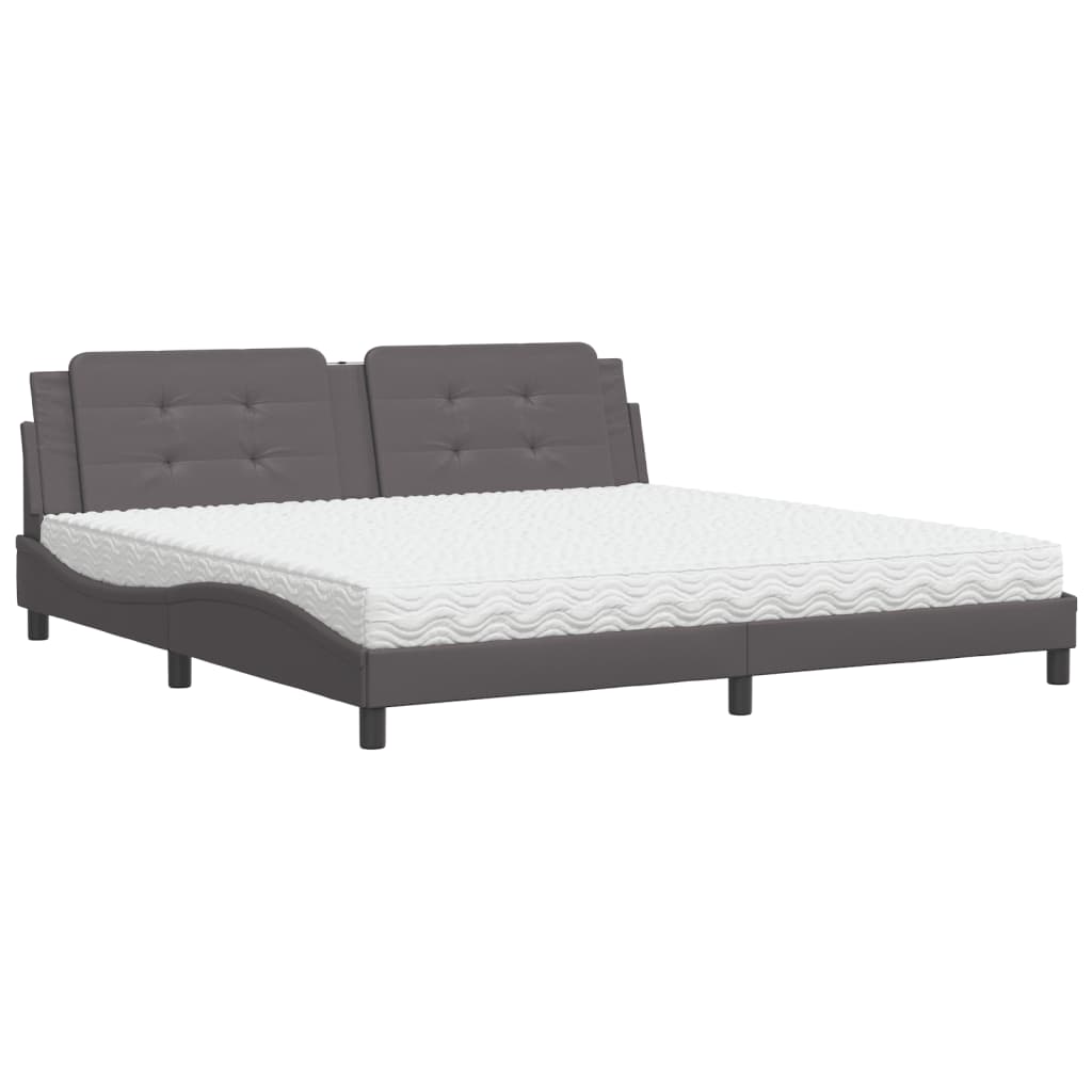 Pat cu saltea, Zadar, gri, 200x200 cm, piele ecologică GartenMobel Dekor