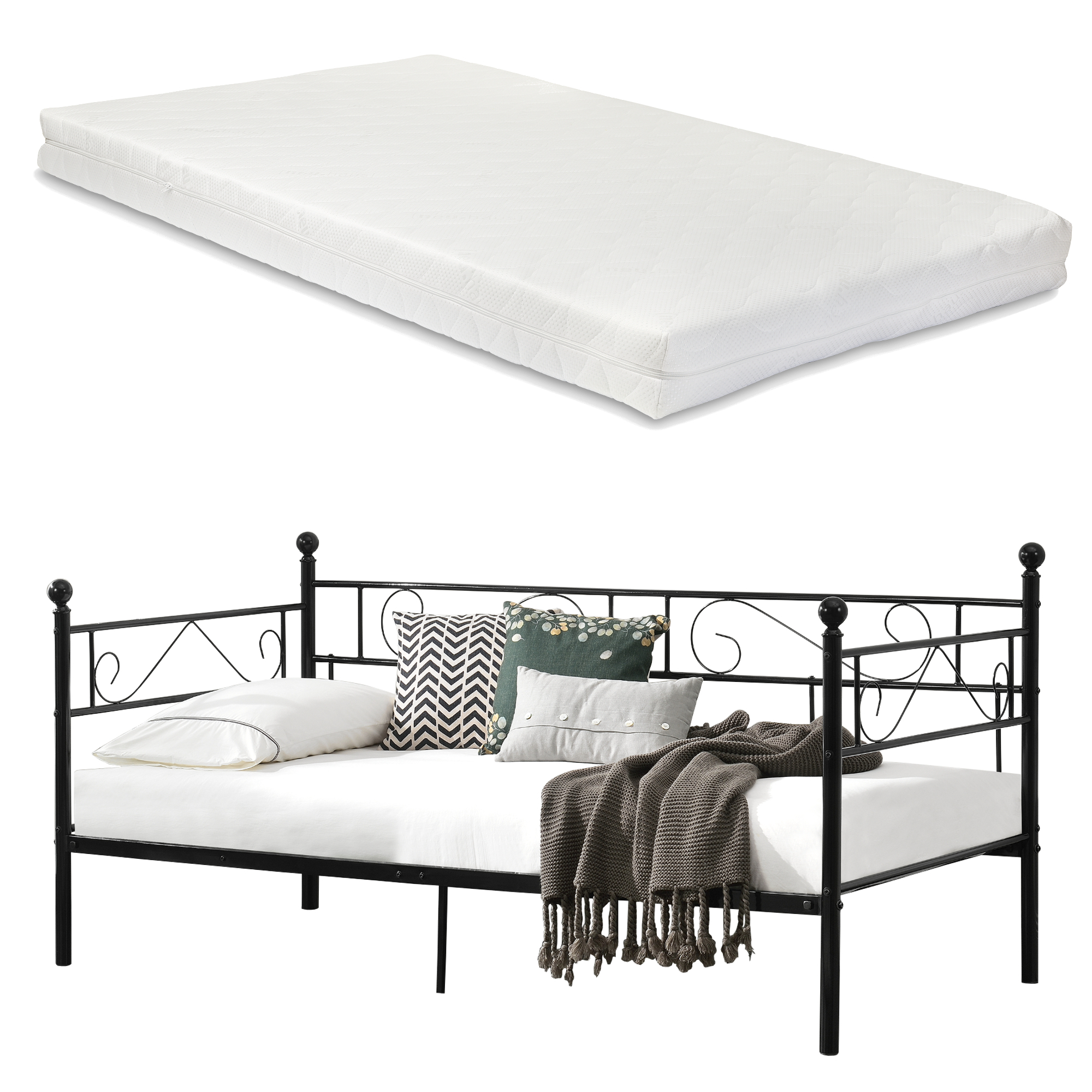 Patul de zi metalic Granada 90x200 cm cu saltea inclusă este alegerea ideală pentru cei care caută un mobilier practic, elegant și rezistent. Perfect pentru camera de oaspeți, dormitor, garsonieră sau spații mai mici, acest pat metalic îmbină designul decorativ cu funcționalitatea de zi cu zi.
