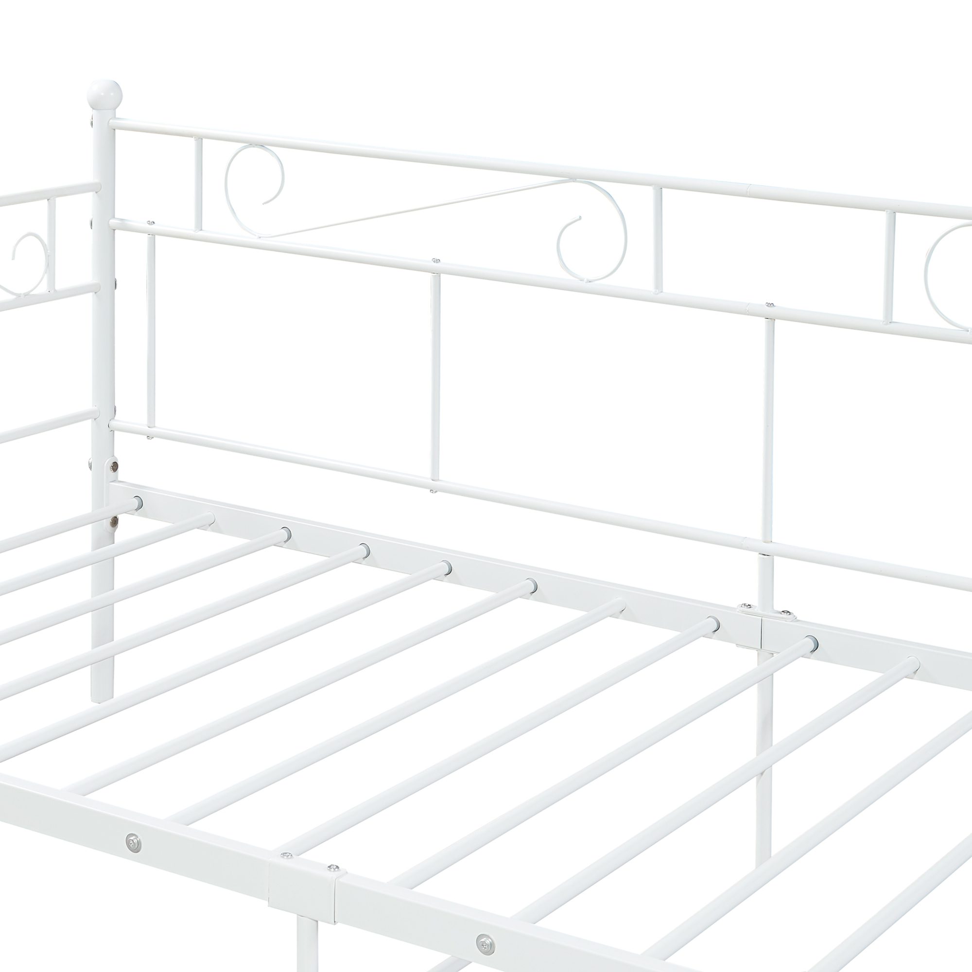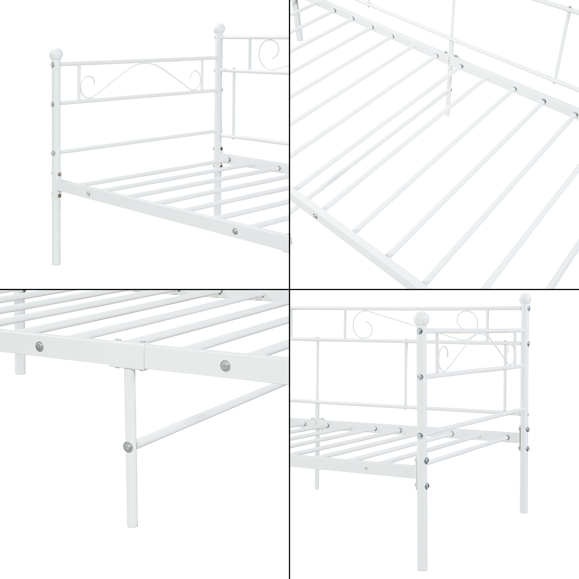 Patul de zi metalic Granada 90x200 cm este alegerea potrivita daca iti doresti o piesa de mobilier practica, eleganta si usor de integrat in orice incapere. Cu un design aerisit si linii decorative curbate, acest pat metalic alb se potriveste perfect in dormitor, camera de oaspeti, camera tineretului sau intr-un studio amenajat inteligent.