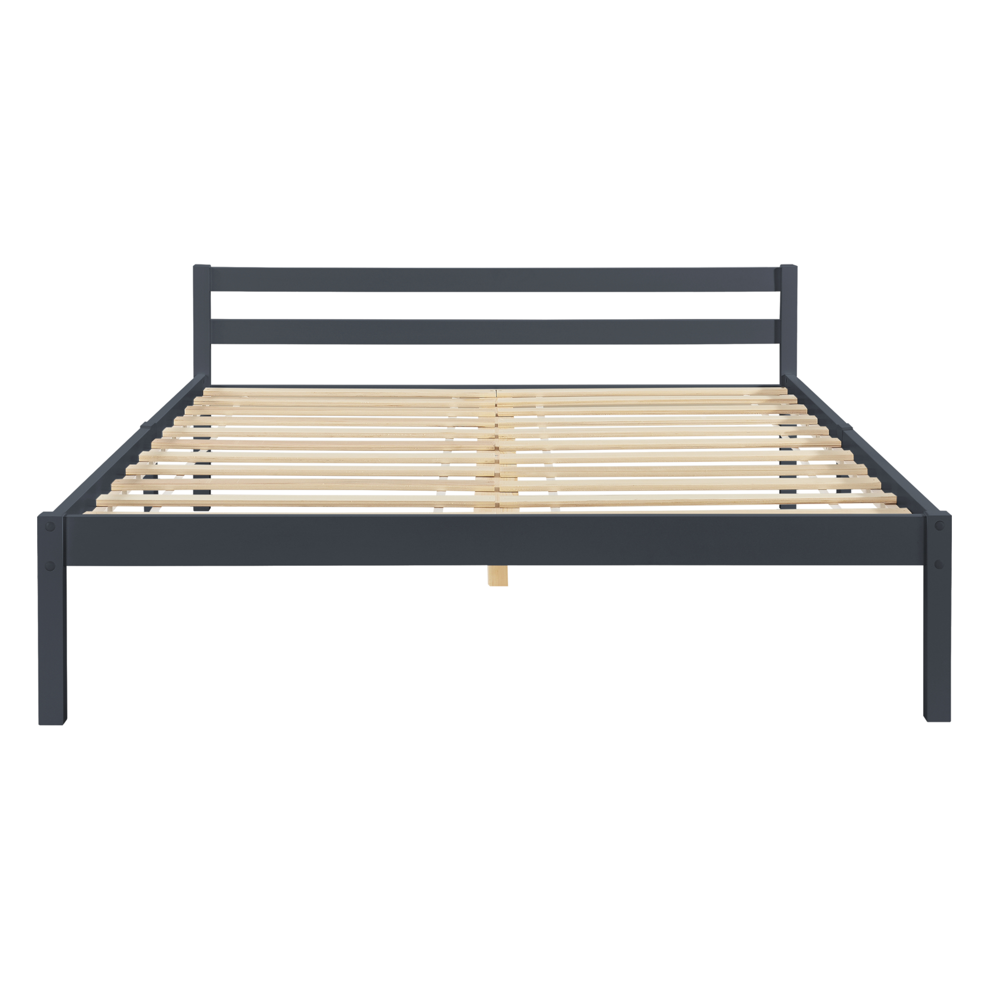 Pat din lemn Nakkila 140x200 cm cu saltea din spumă rece, gri închis