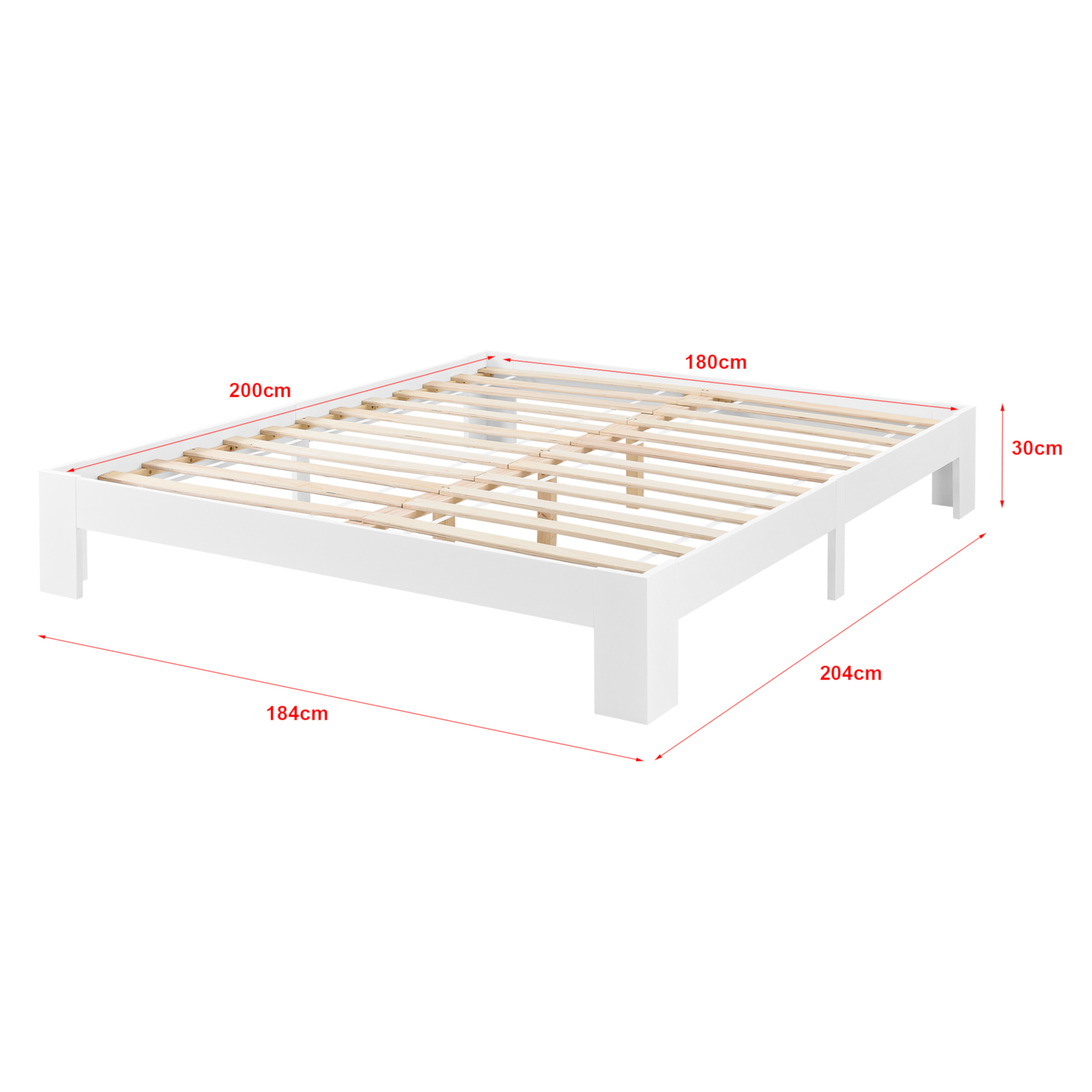 - Dimensiuni totale pat (L x l x h): 204 x 184 x 30 cm