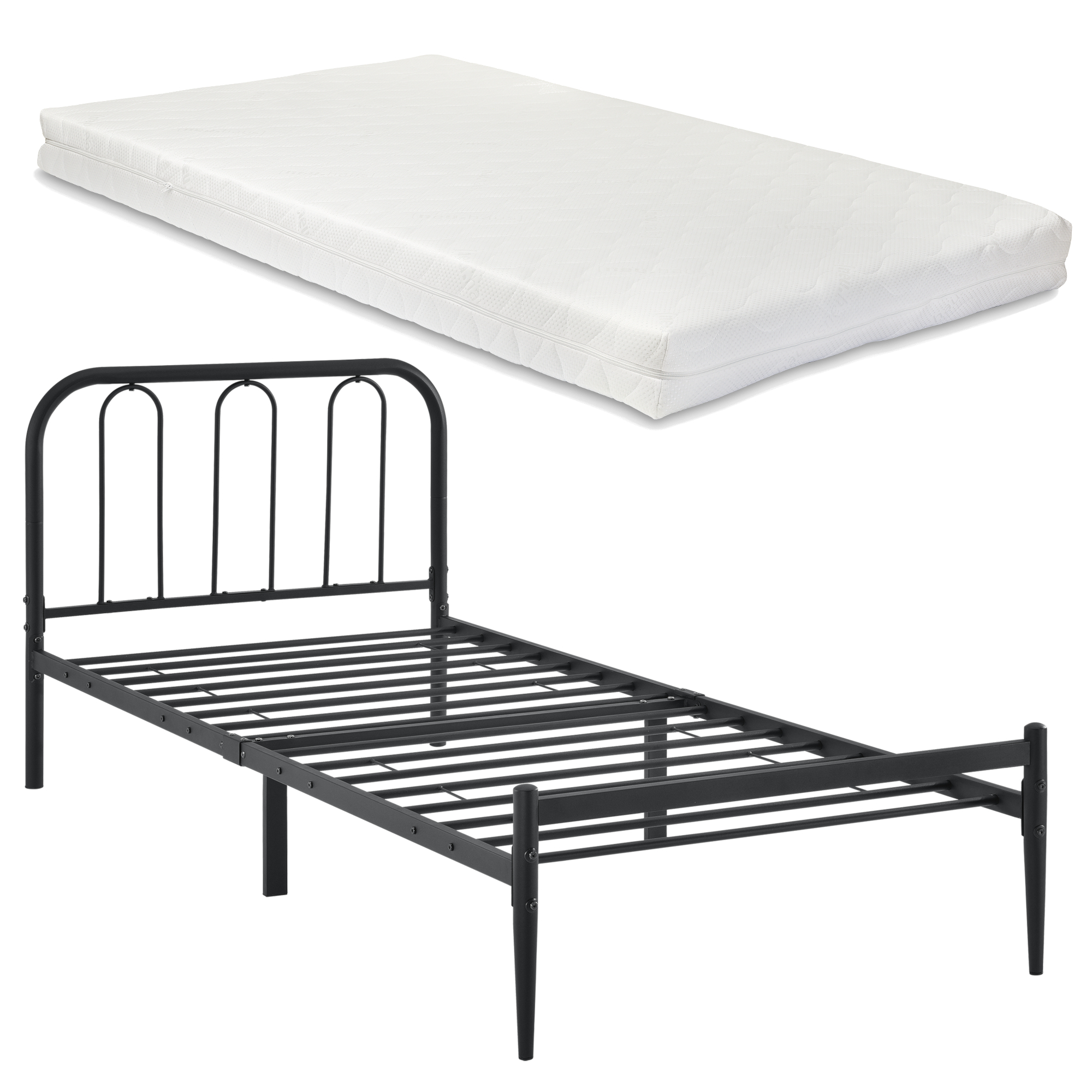 Pat dormitor Hanco 90 cu saltea metal negru mat [en.casa] HausGarden Leisure