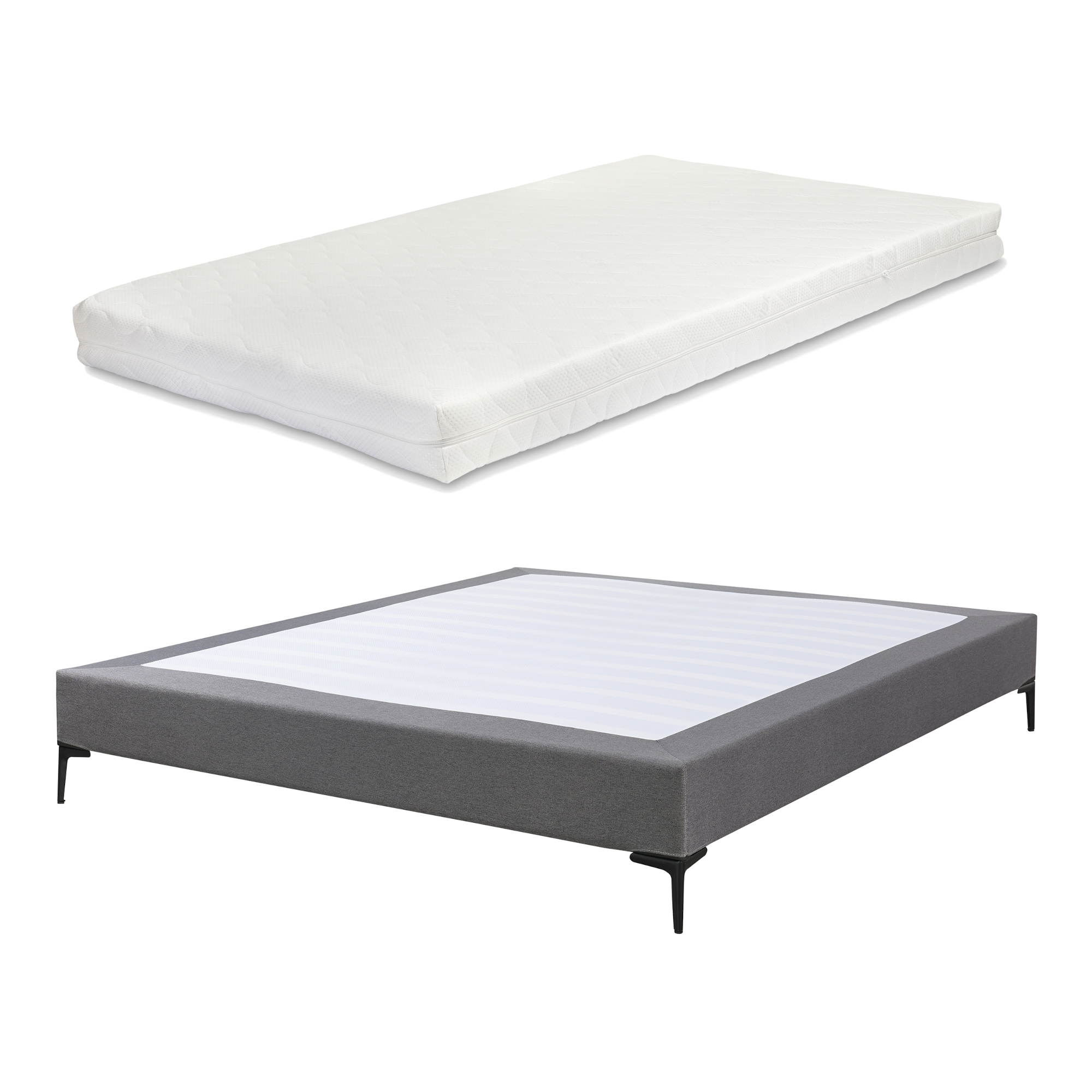 Pat dublu Lilla cu saltea și tapițerie textilă 140x200 cm, gri închis