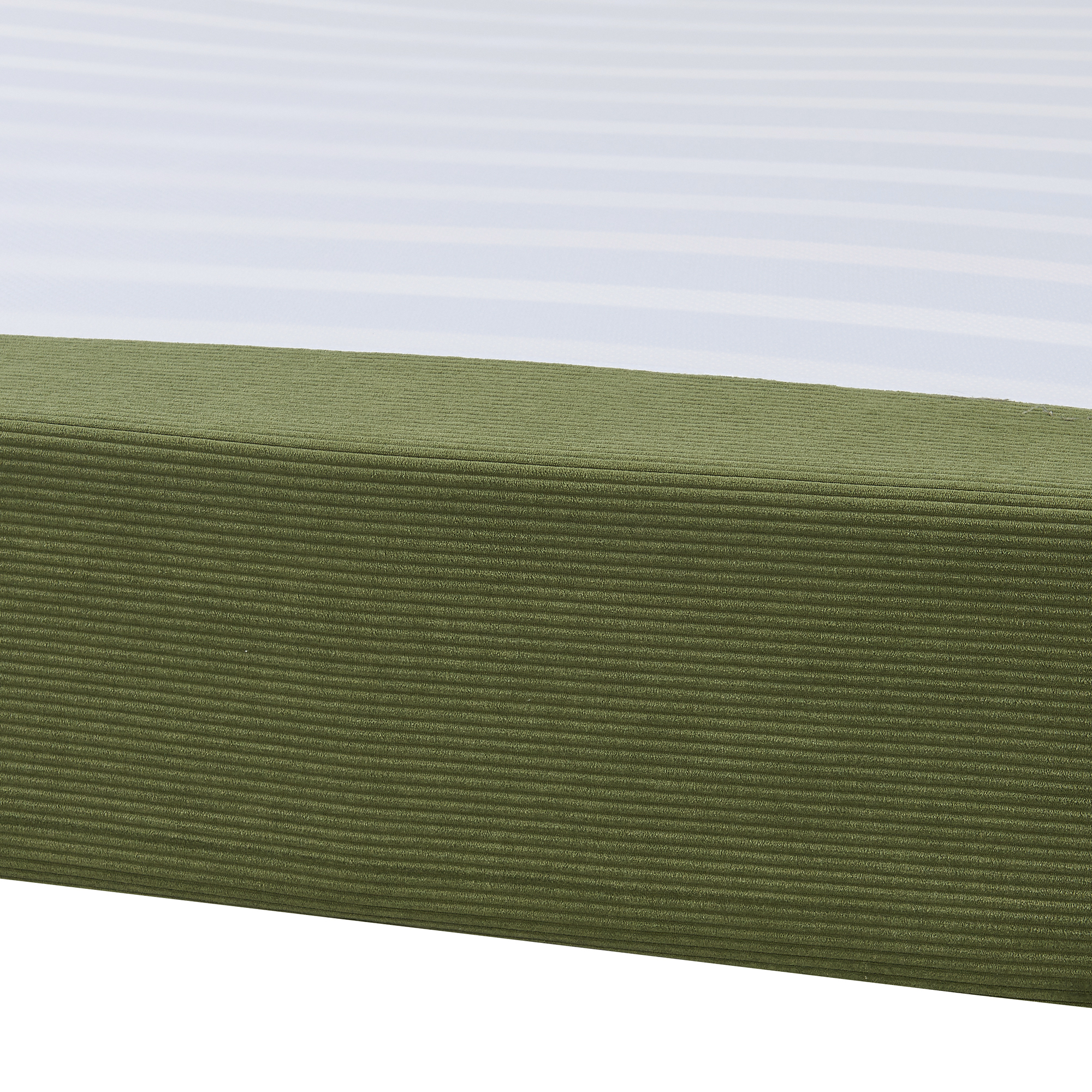 Pat dublu tapițat Lilla, catifea raiată verde, 140x200 cm, cu somieră