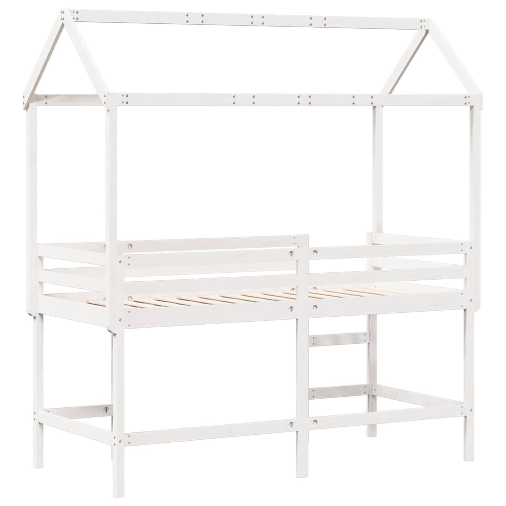 Pat etajat cu scară și acoperiș, alb, 90x200 cm, lemn masiv pin GartenMobel Dekor