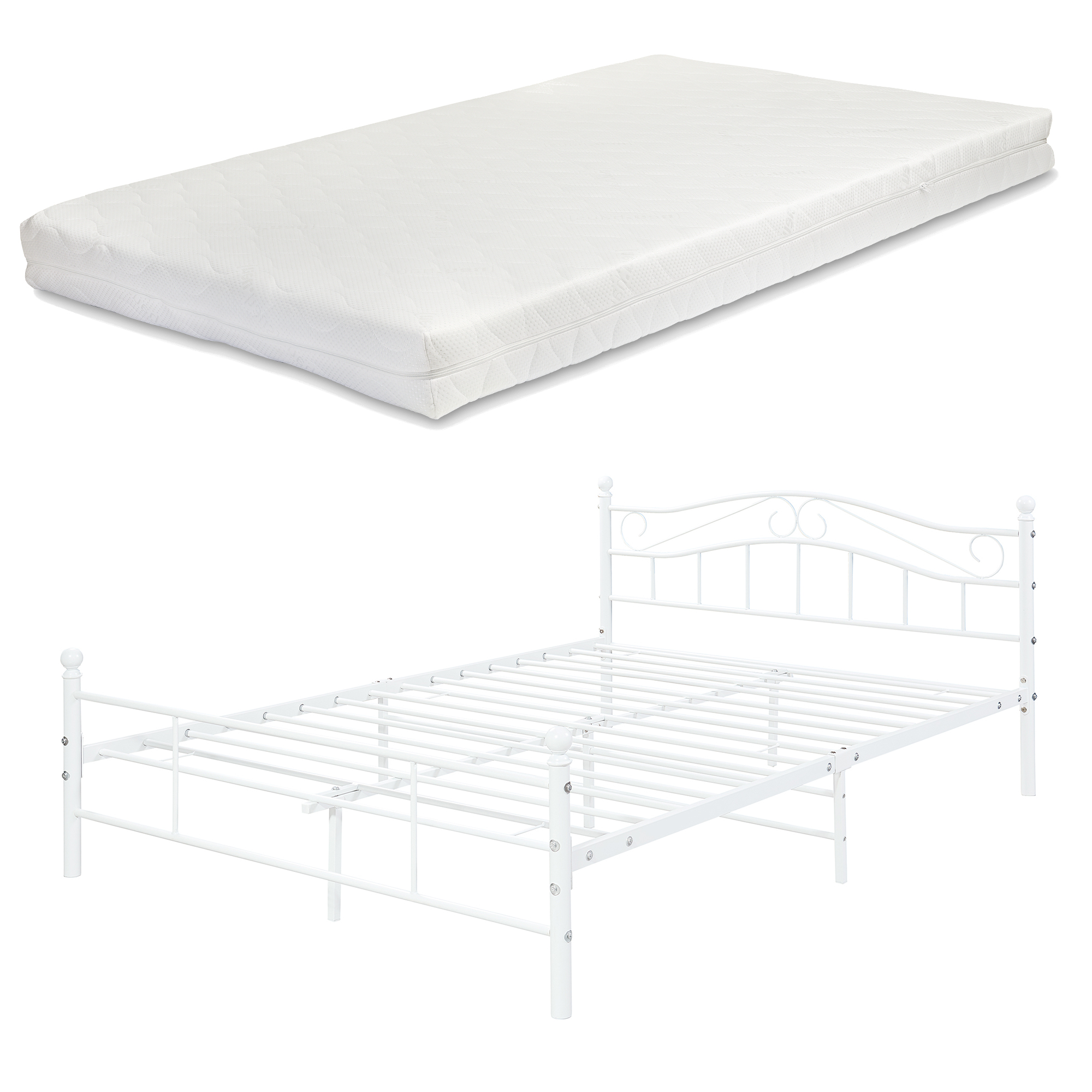 Pat metal Florența 140x200 cm alb cu saltea din spumă rece