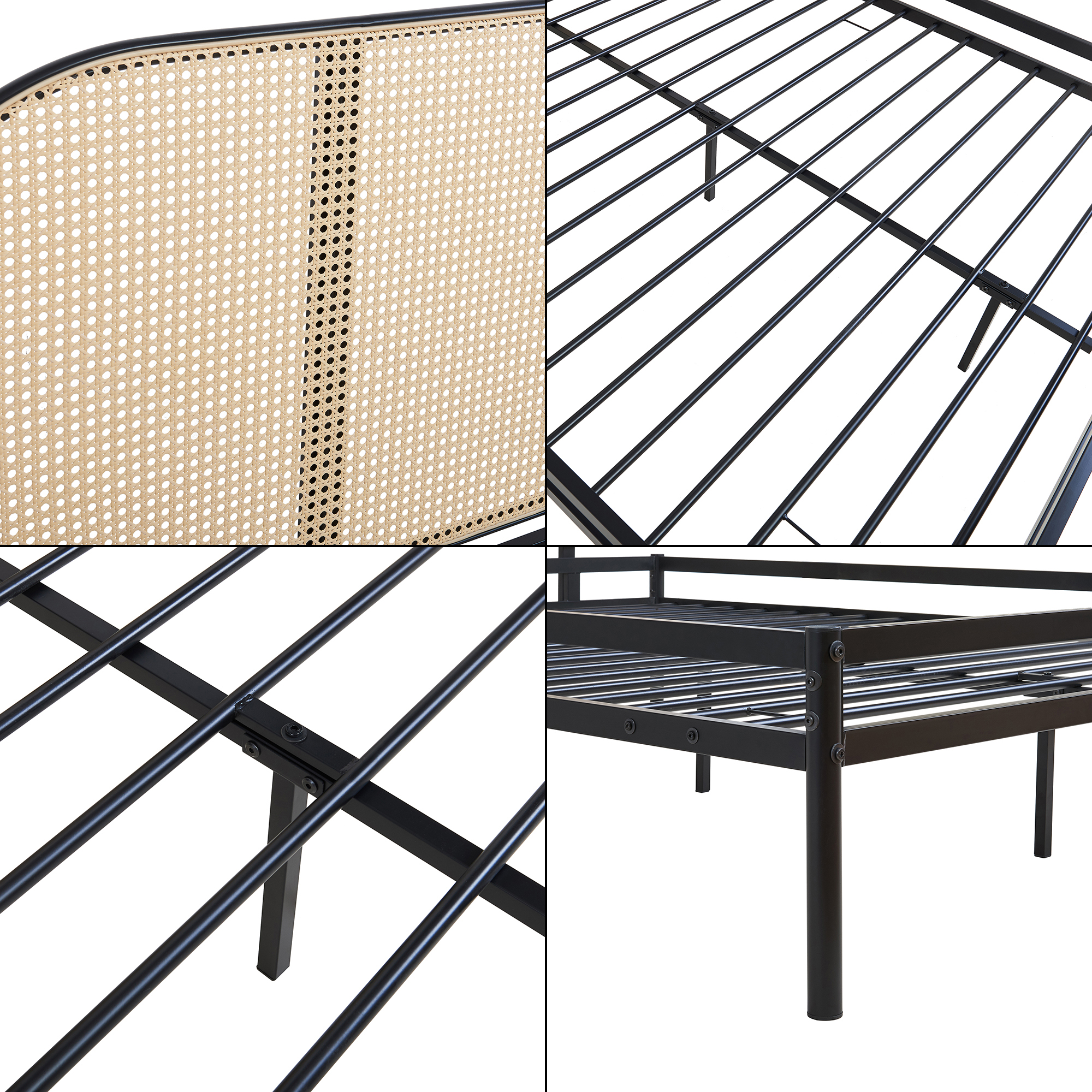 Pat metalic 160x200 cm cu tăblie ovală aspect rattan, negru