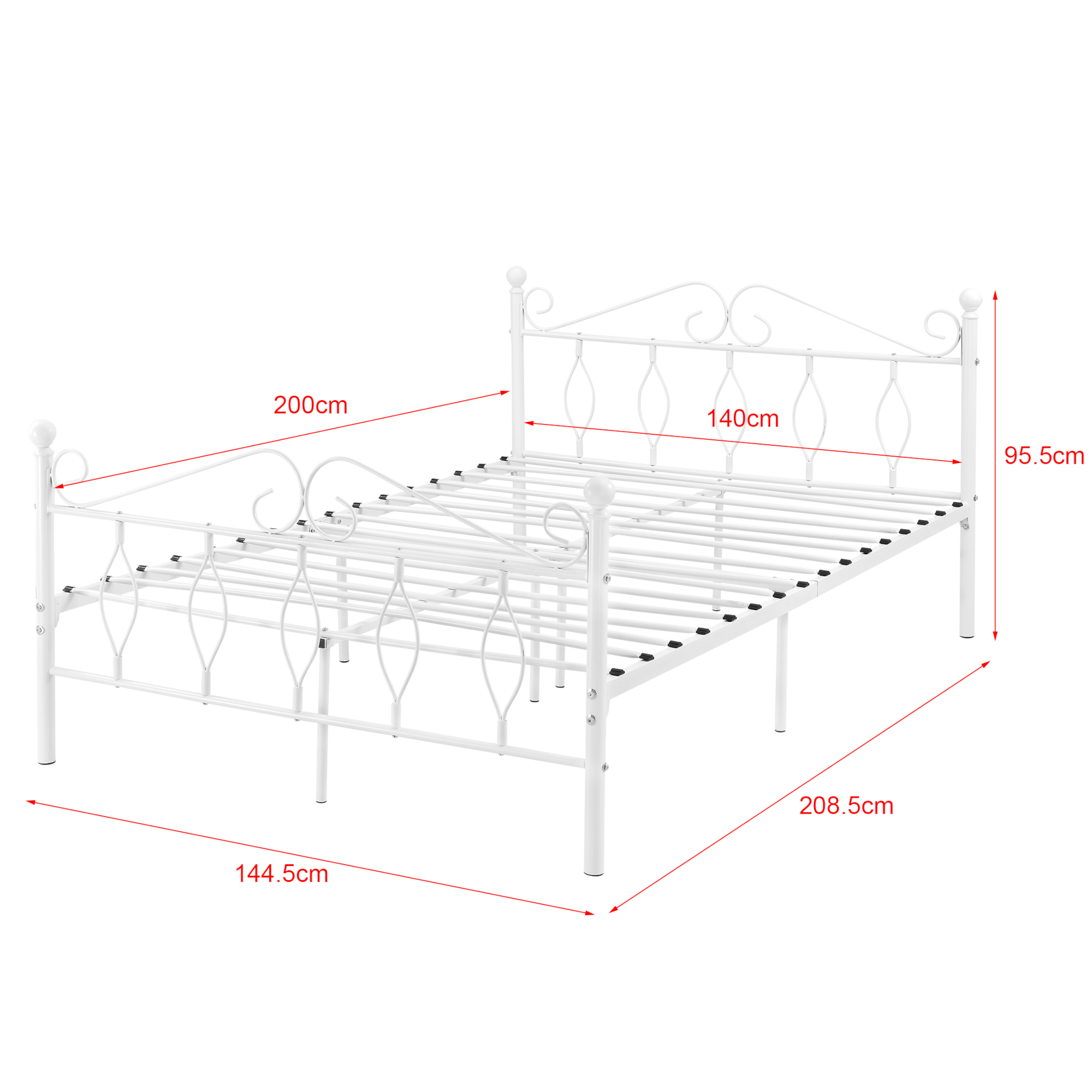 Pat Metalic Dublu Apolda 140x200 cm pentru 2 Persoane, Culoare Alb Mat